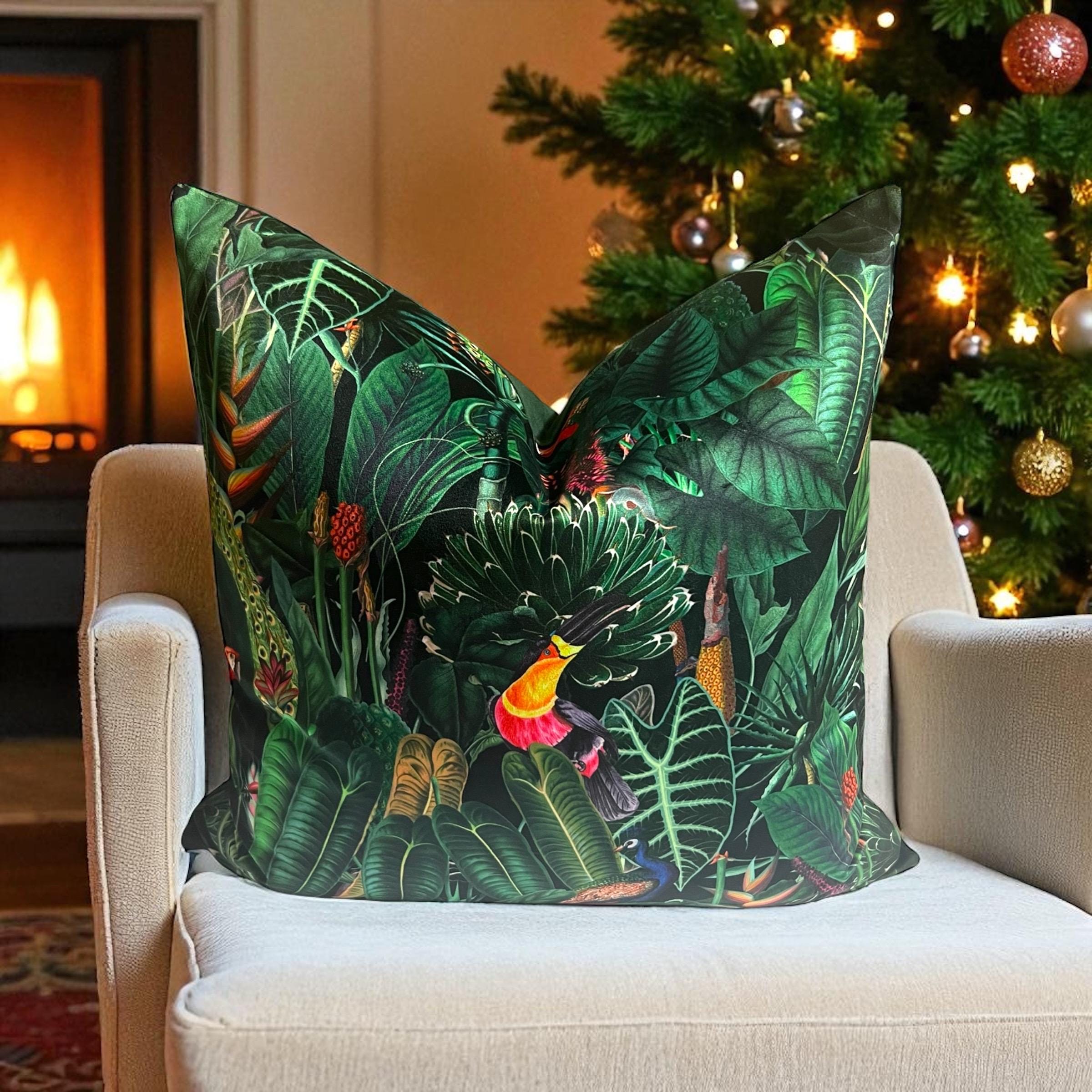 🌿The front side of the pillow features stunning Tropical Velvets collection, with exotic birds and rich green leafy plants in vibrant colors. Soft to touch.