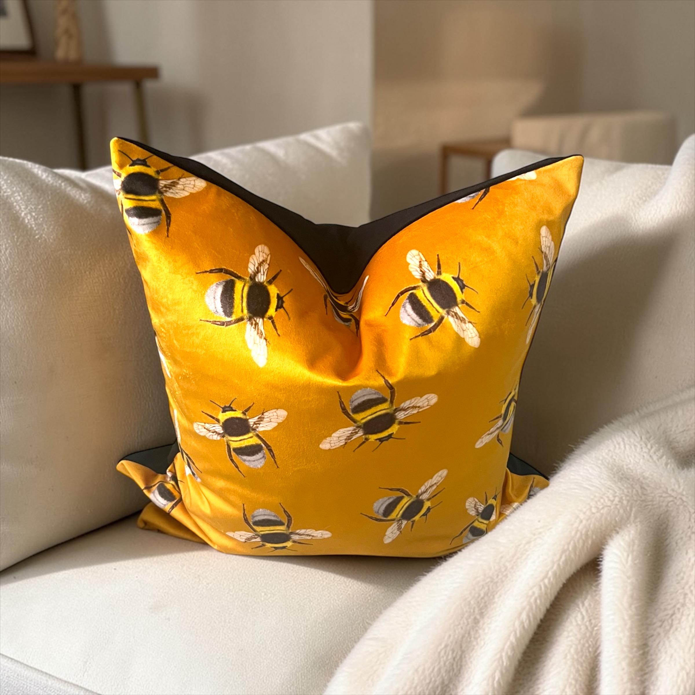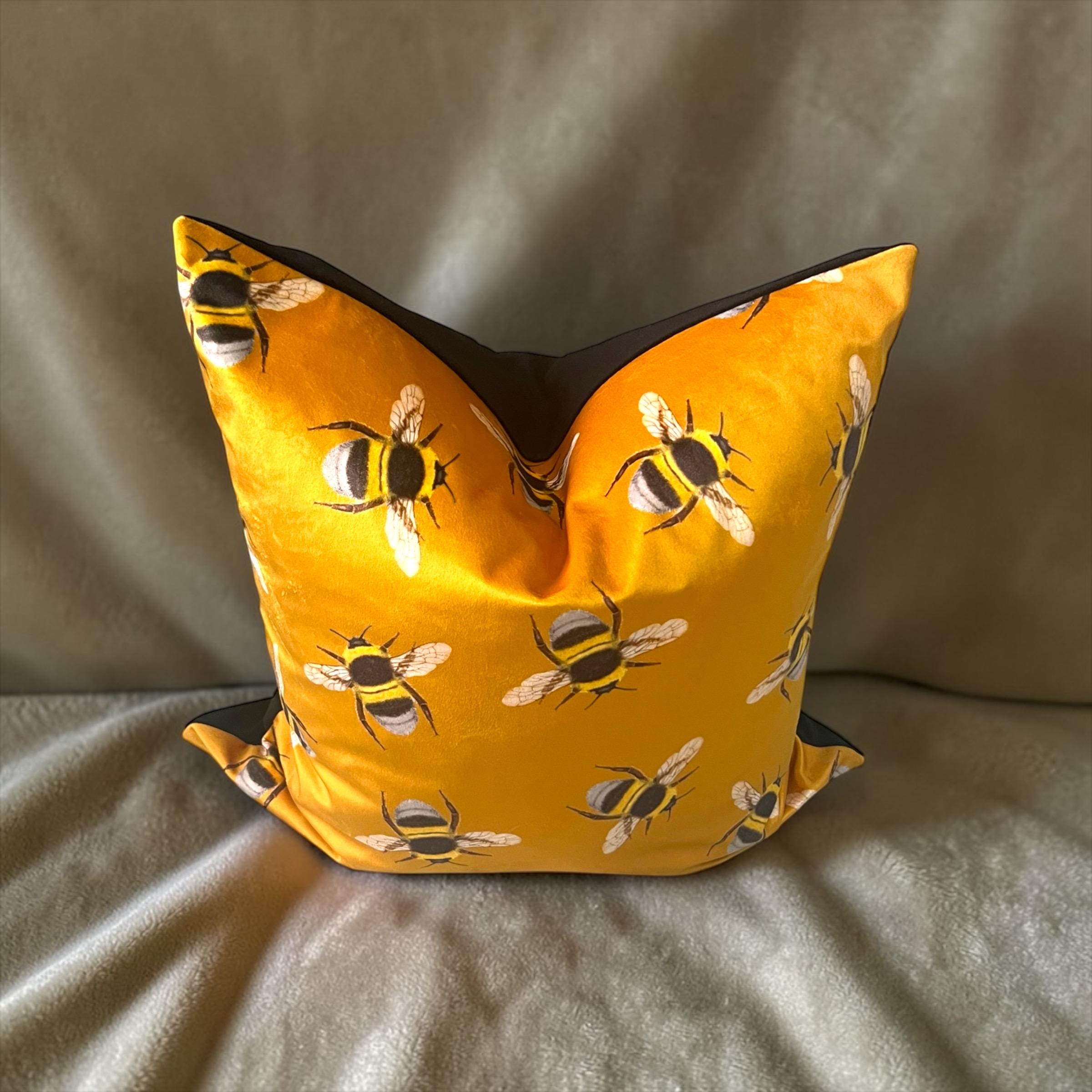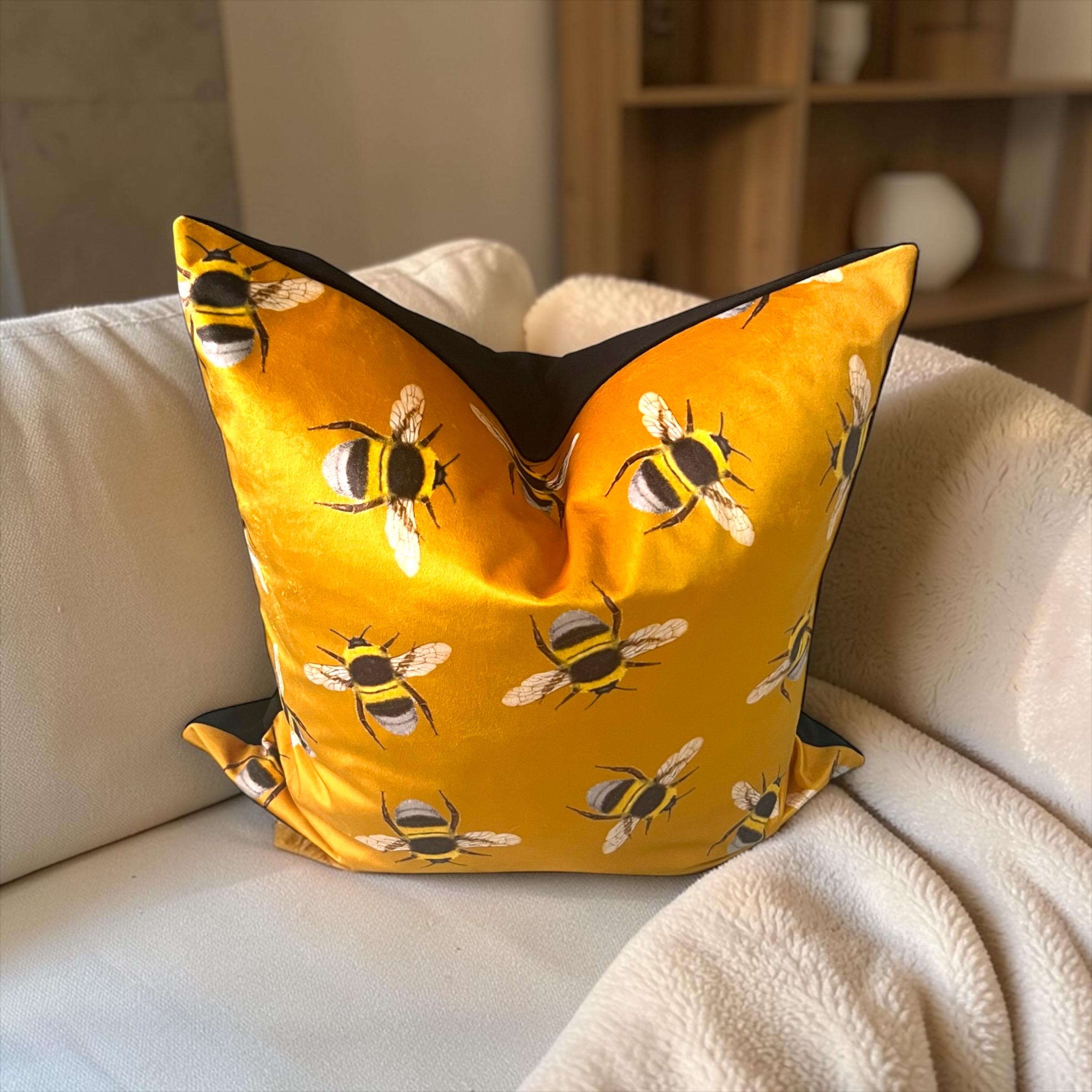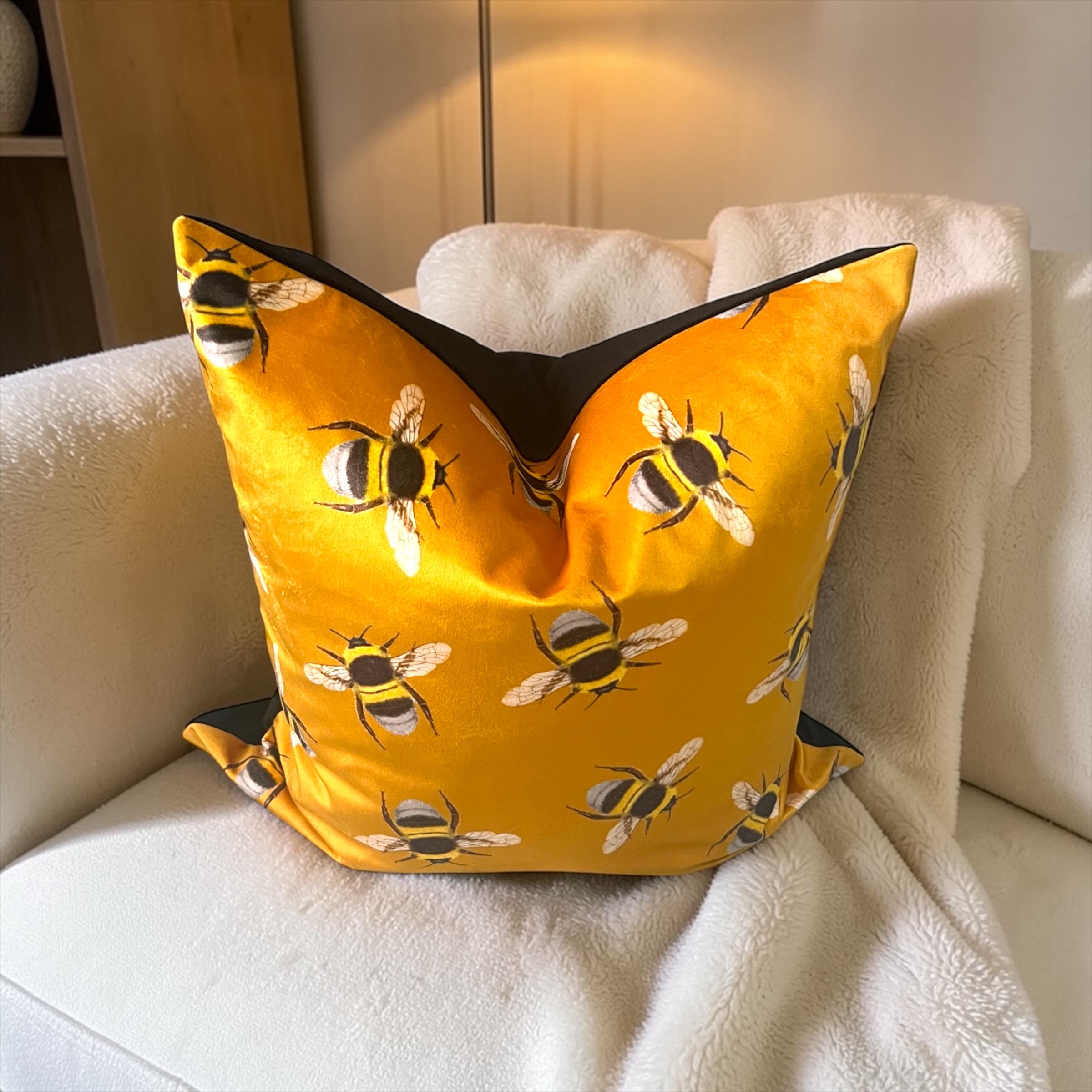 Luxury Handmade Italian Velvet Pillow Cover: Gold Yellow Bees Design