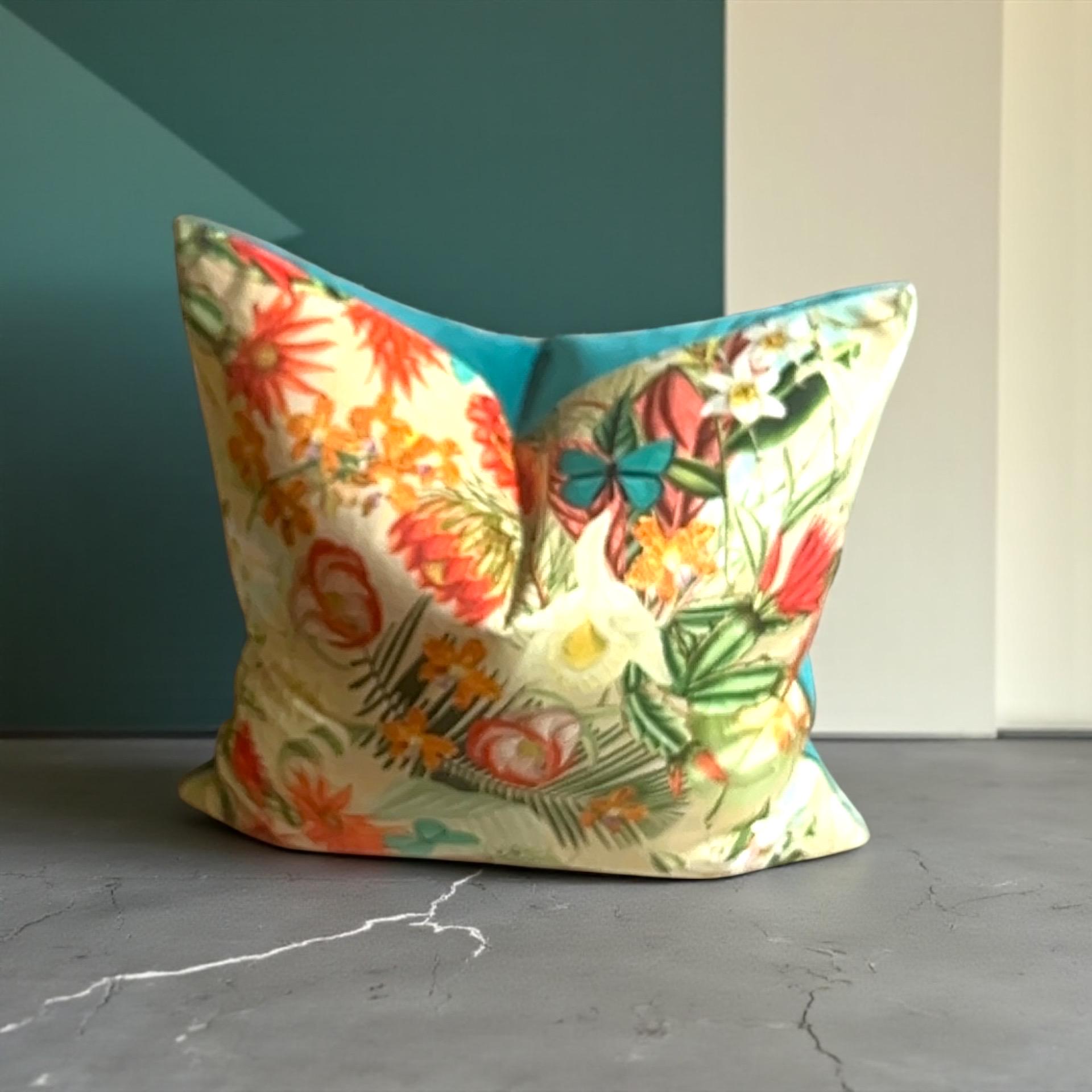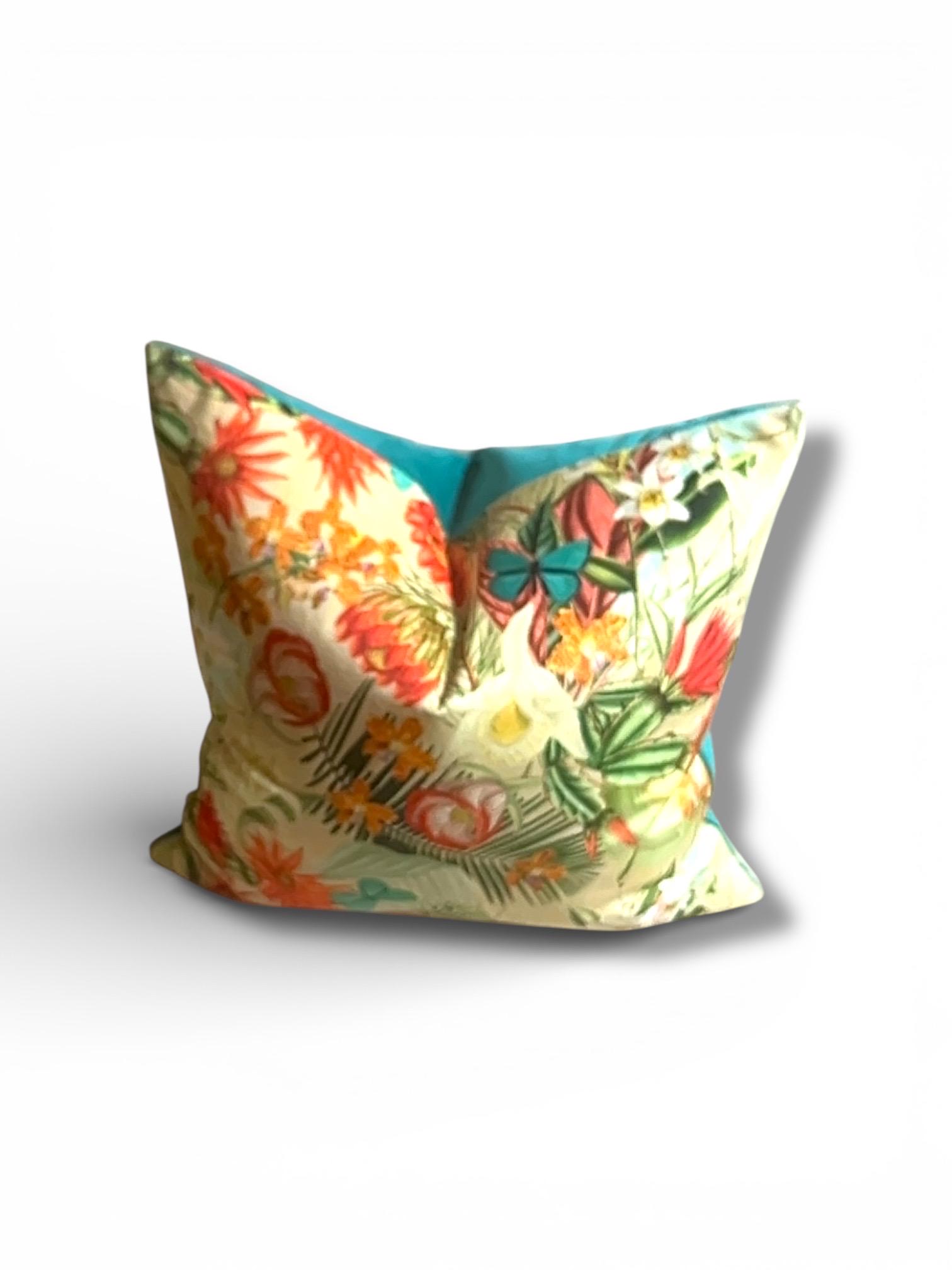 Transform your home into a haven of style with this handmade luxury pillow, crafted with exquisite care from premium designer Italian velvet. Featuring a delightful tropical pattern of flowers and butterflies, this pillow is more than just décor—it’s a work of art infused with love and passion.
