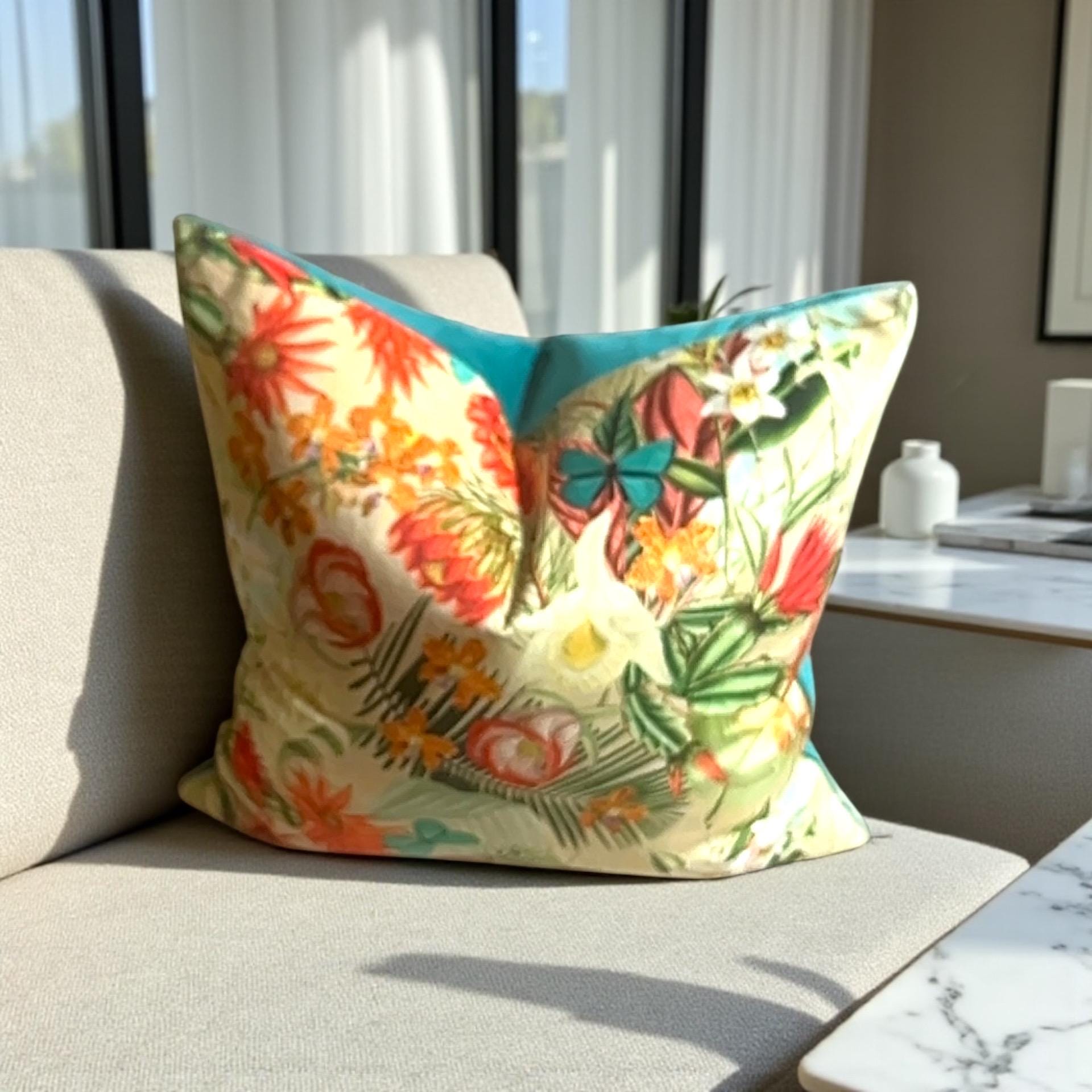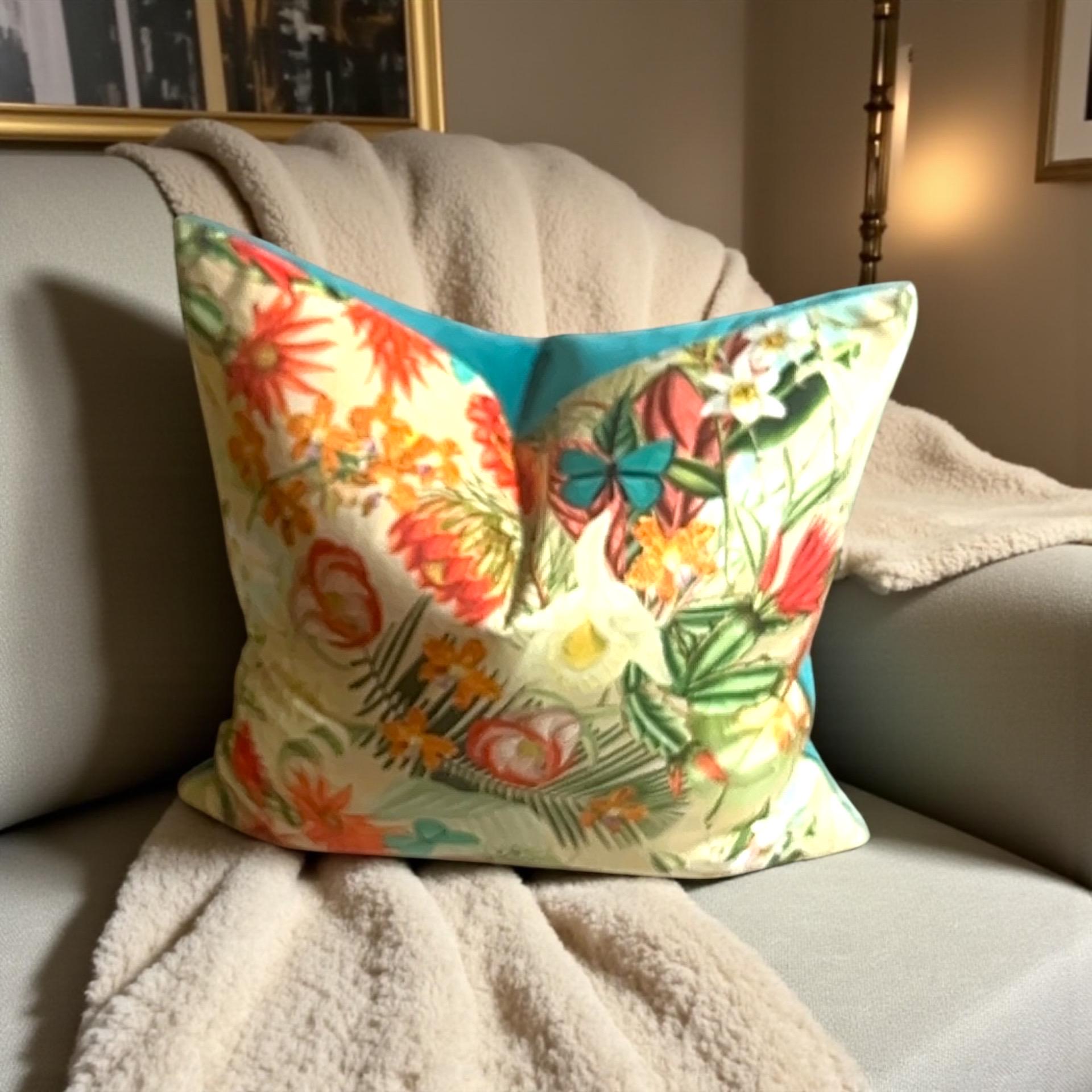 Luxurious Italian Velvet Tropical Floral Butterfly Pillow Cover - Handmade Designer Home Decor Cushion