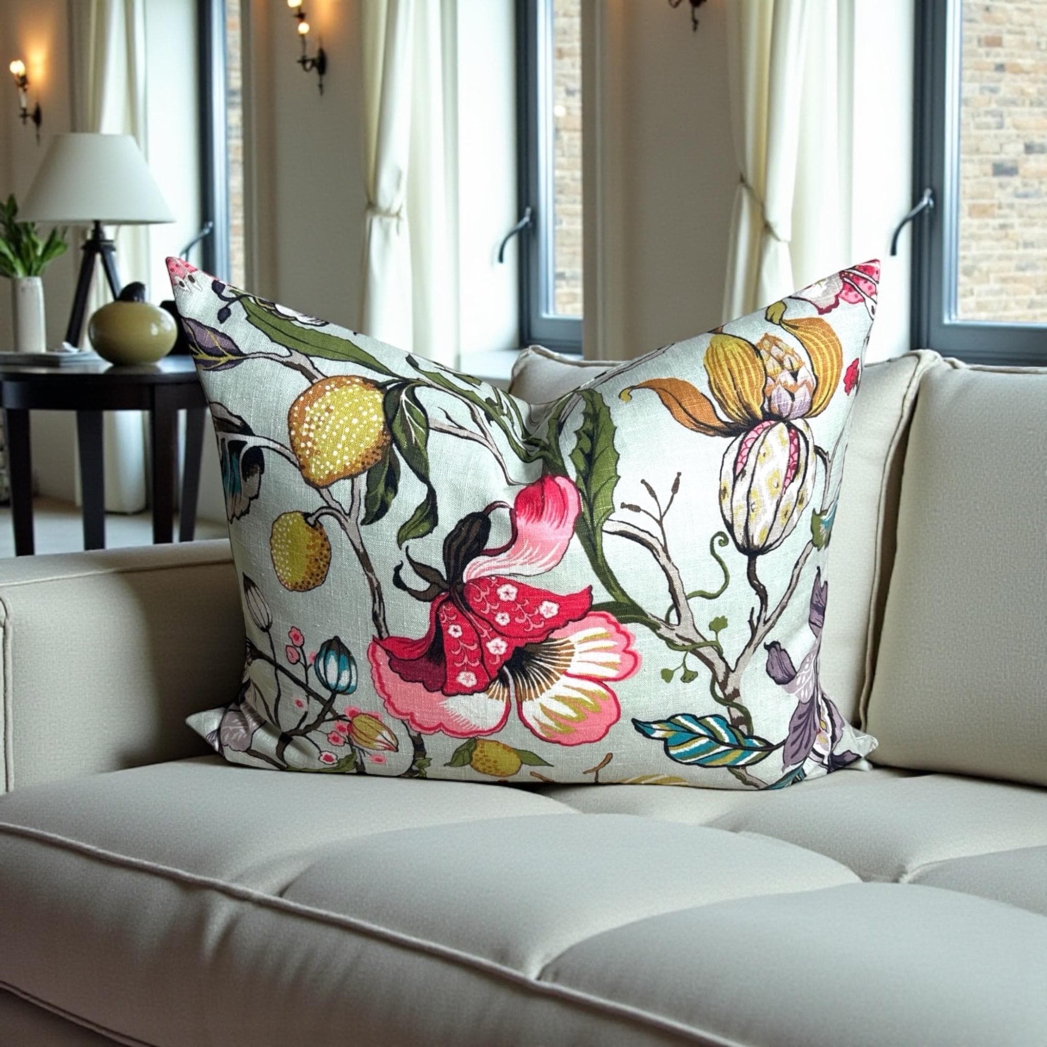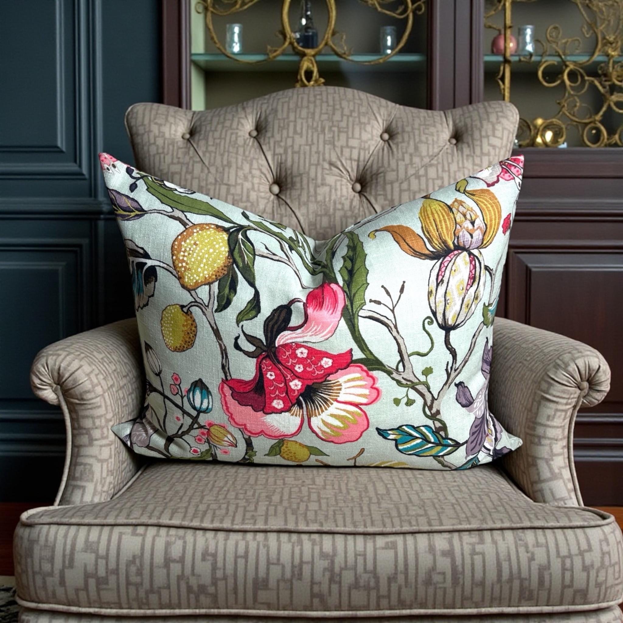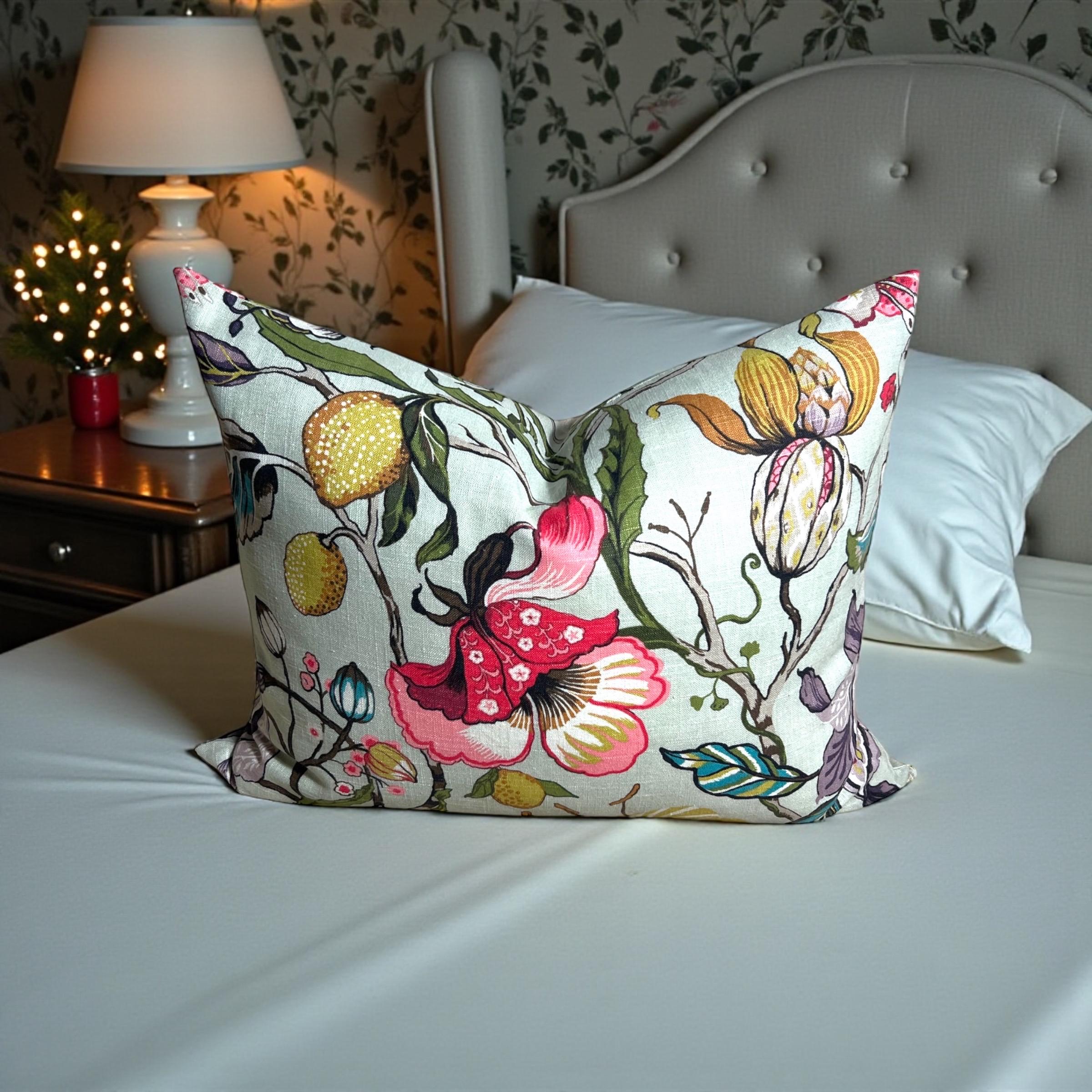 Luxury Handmade Fabricut Euphorbia Linen Pillow Cover: Floral Decorative Pillow