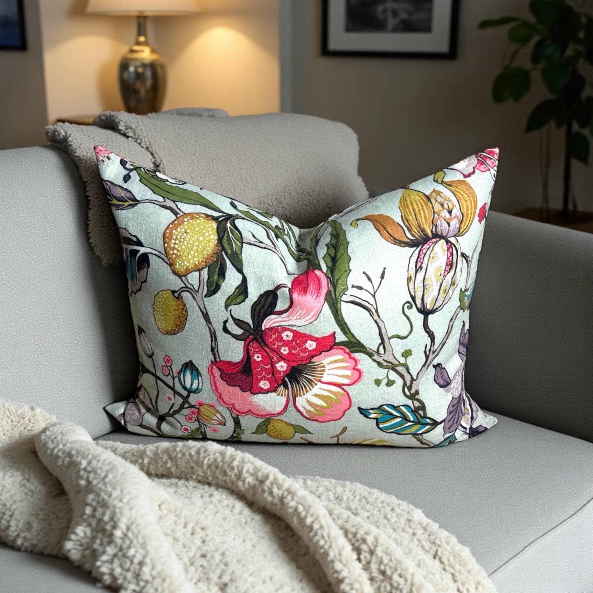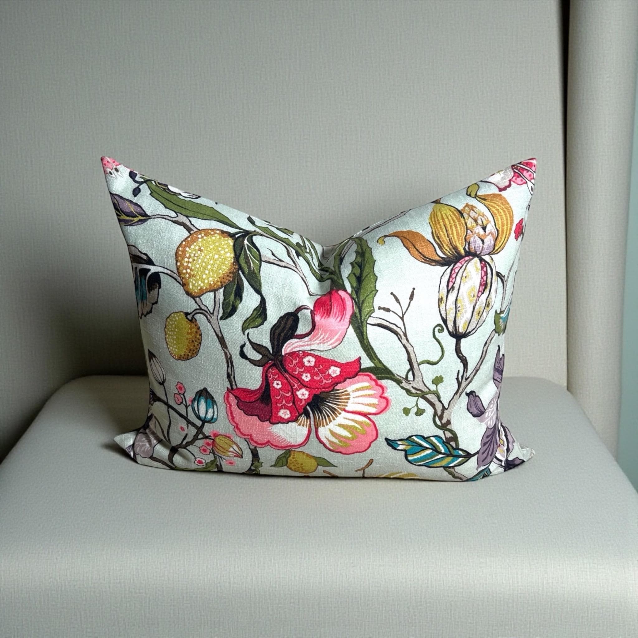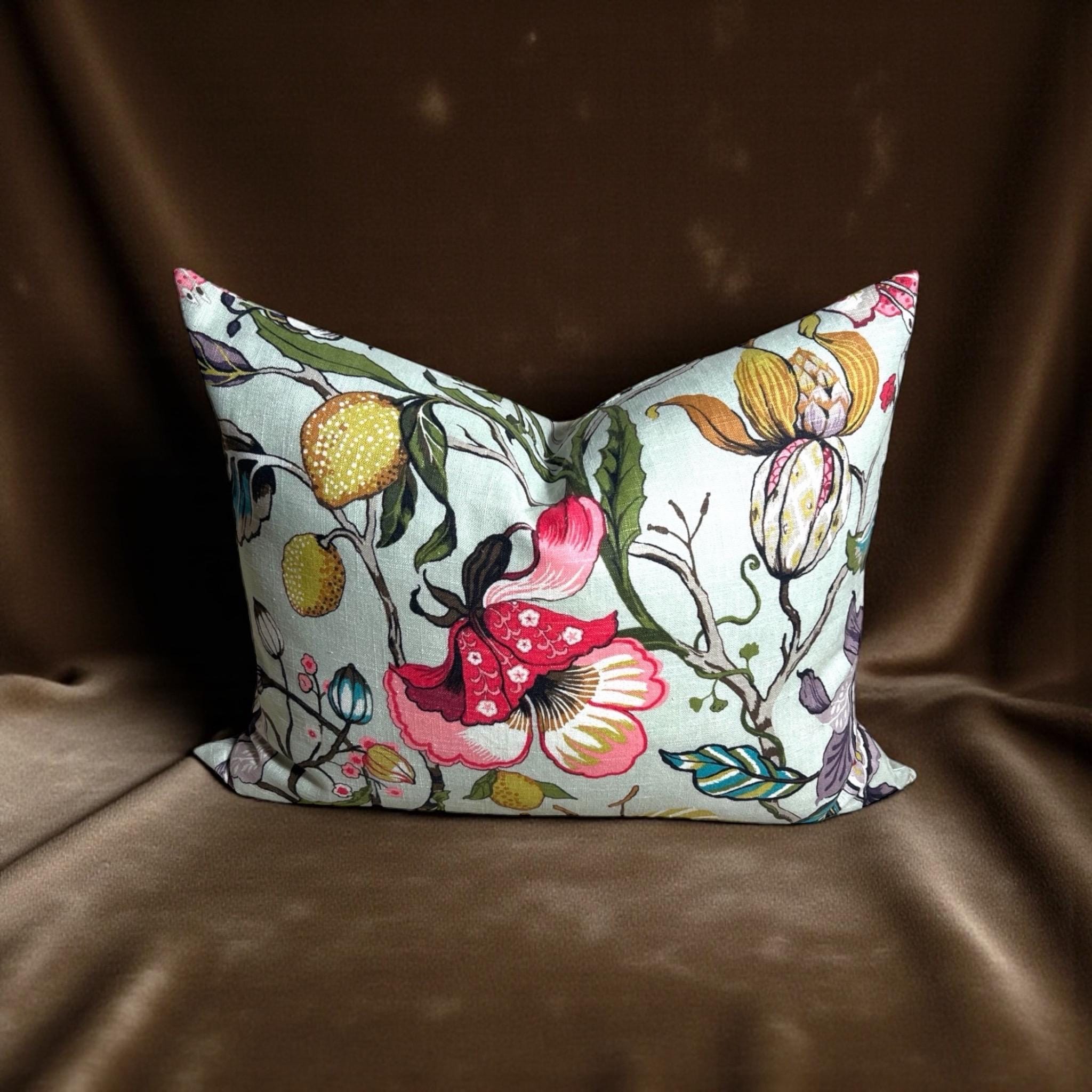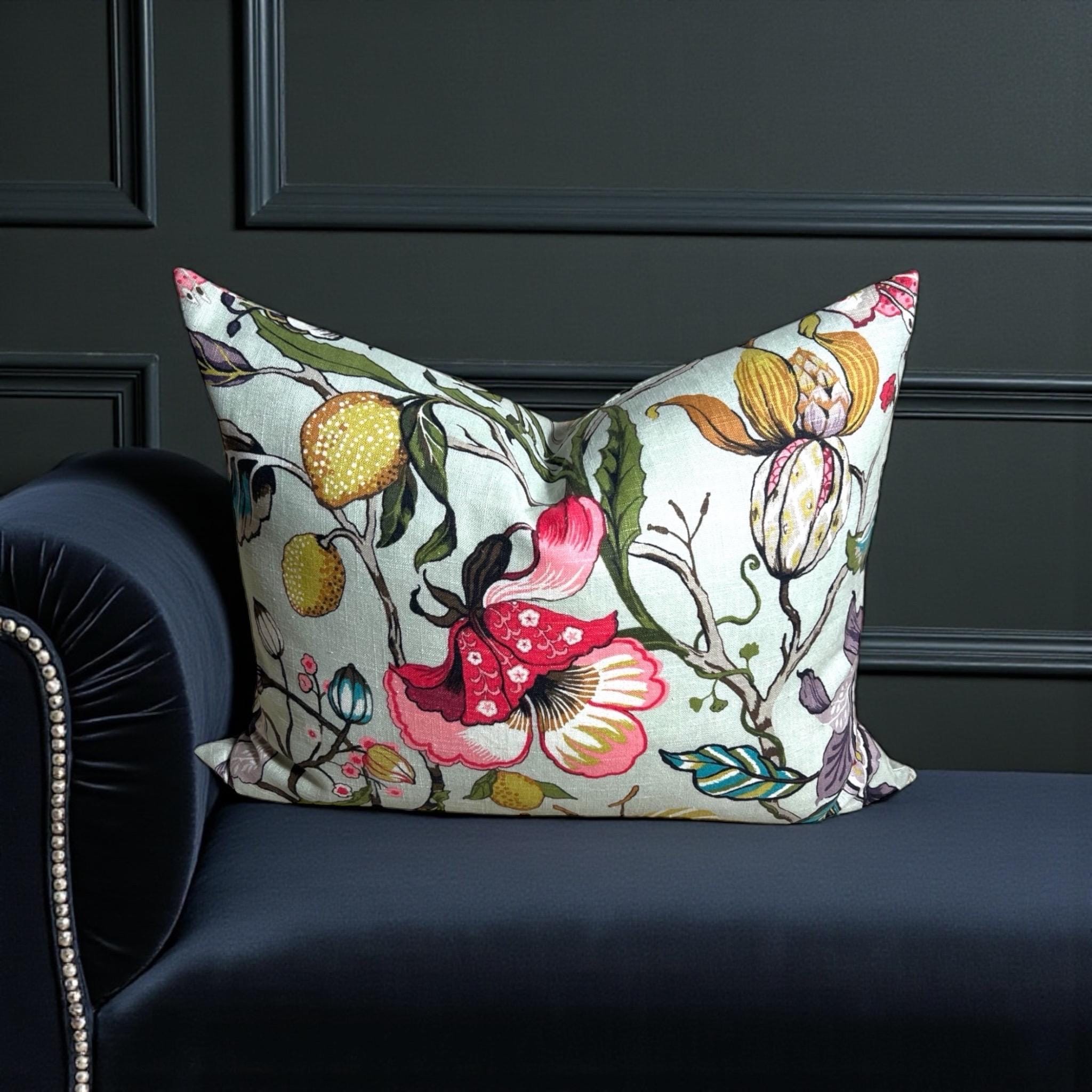 Luxury Handmade Fabricut Euphorbia Linen Pillow Cover: Floral Decorative Pillow