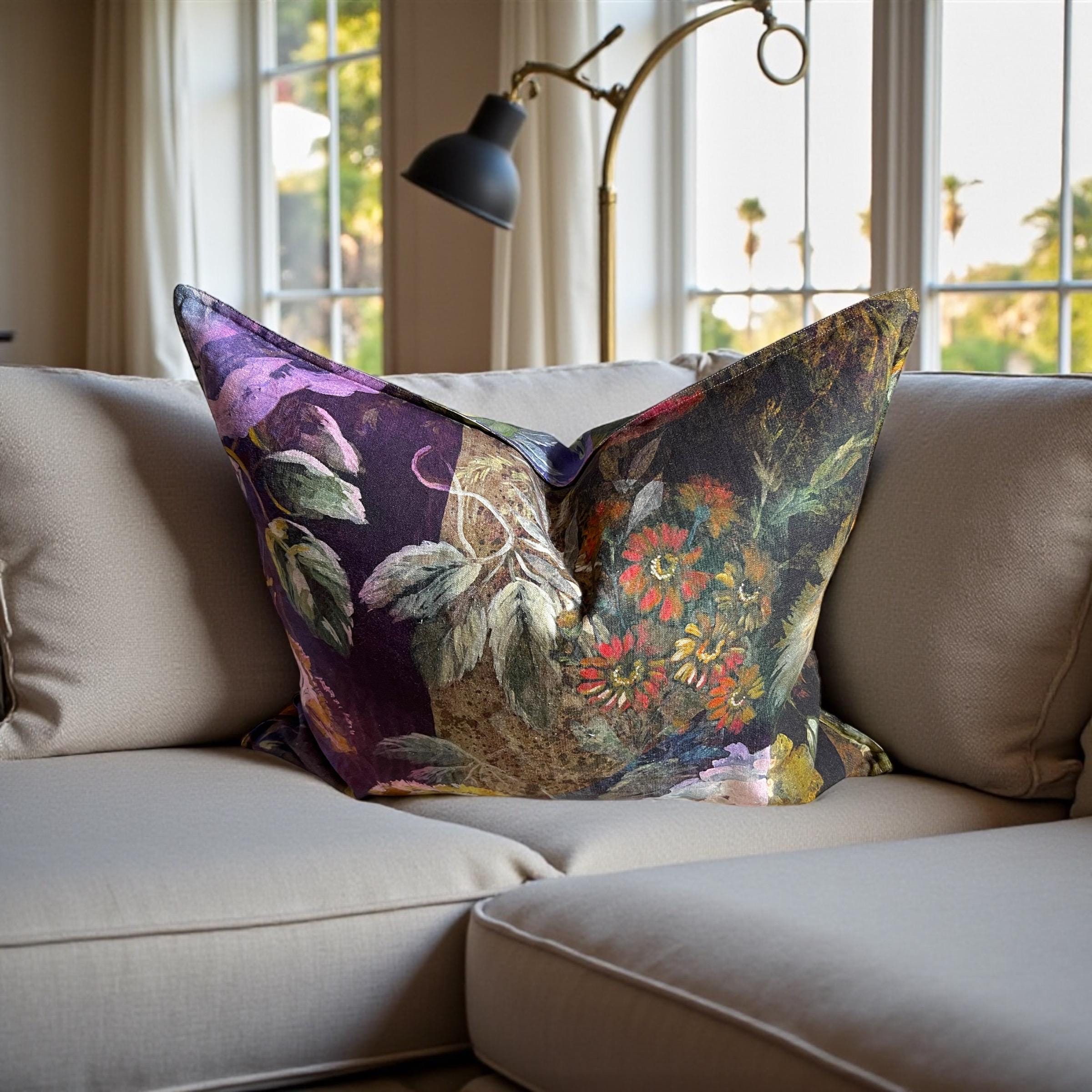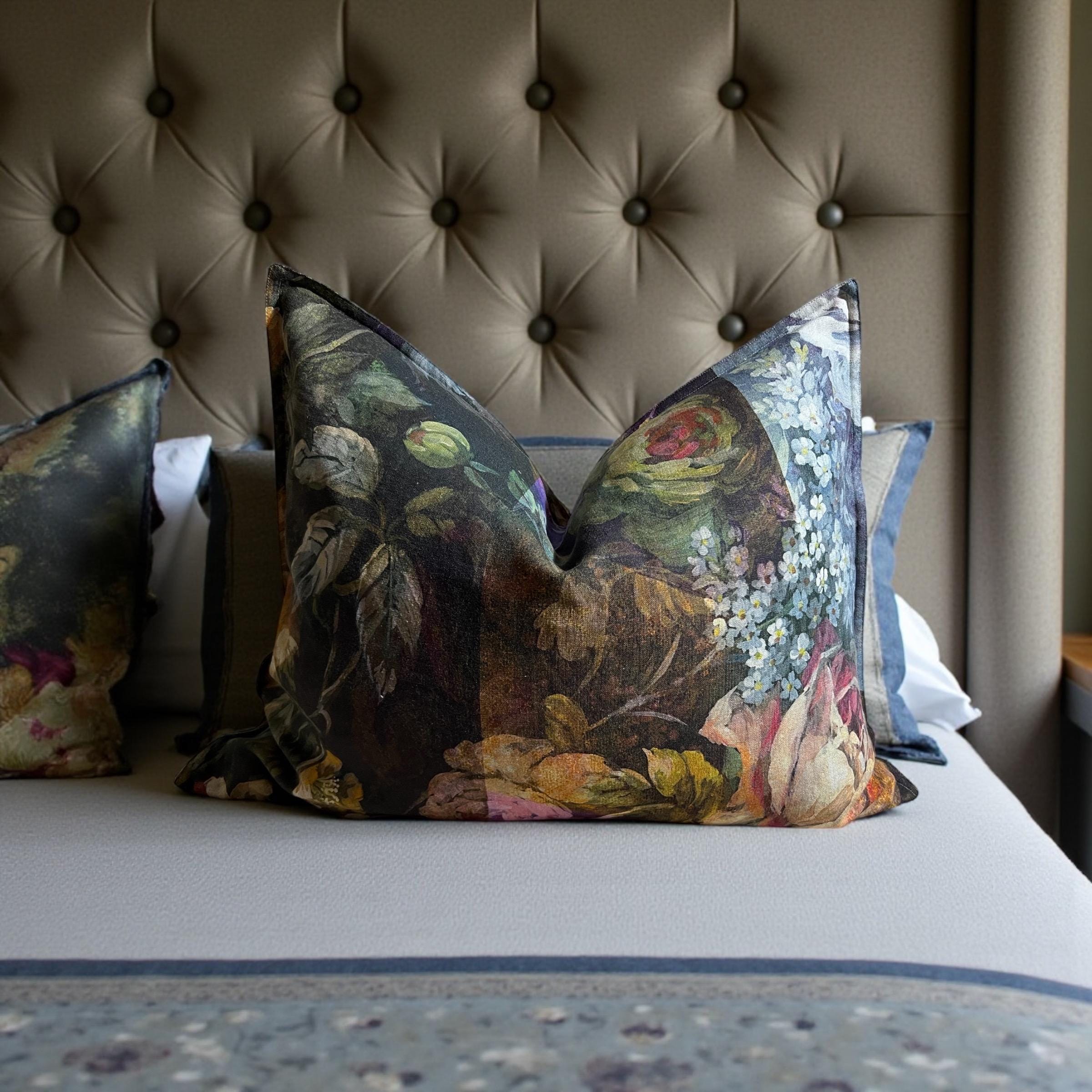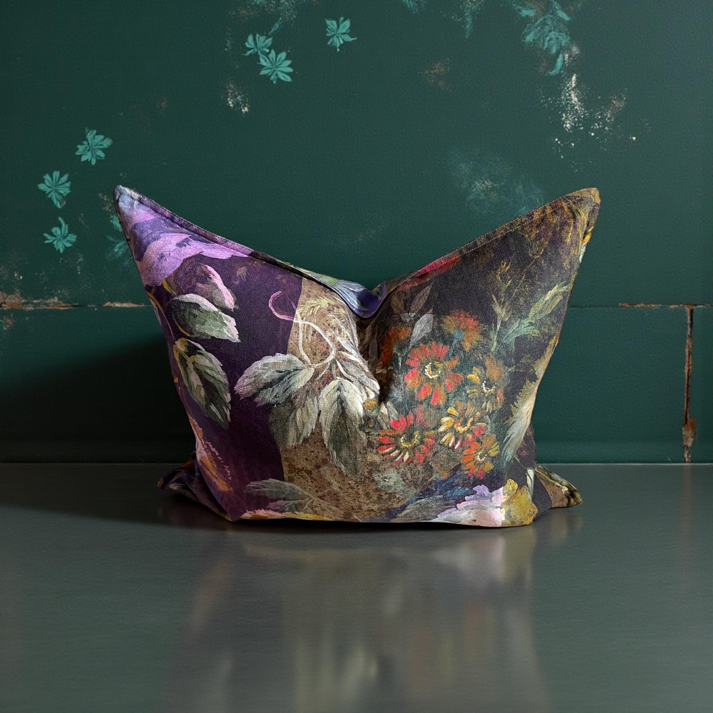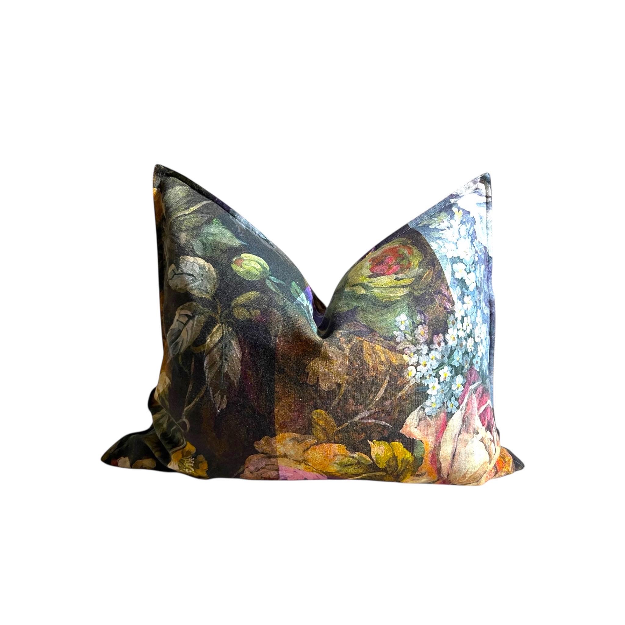 Rare Designers Guild MINAKARI linen pillow cover – luxury double-sided floral design. Same exquisite fabric on both sides, each side uniquely different.