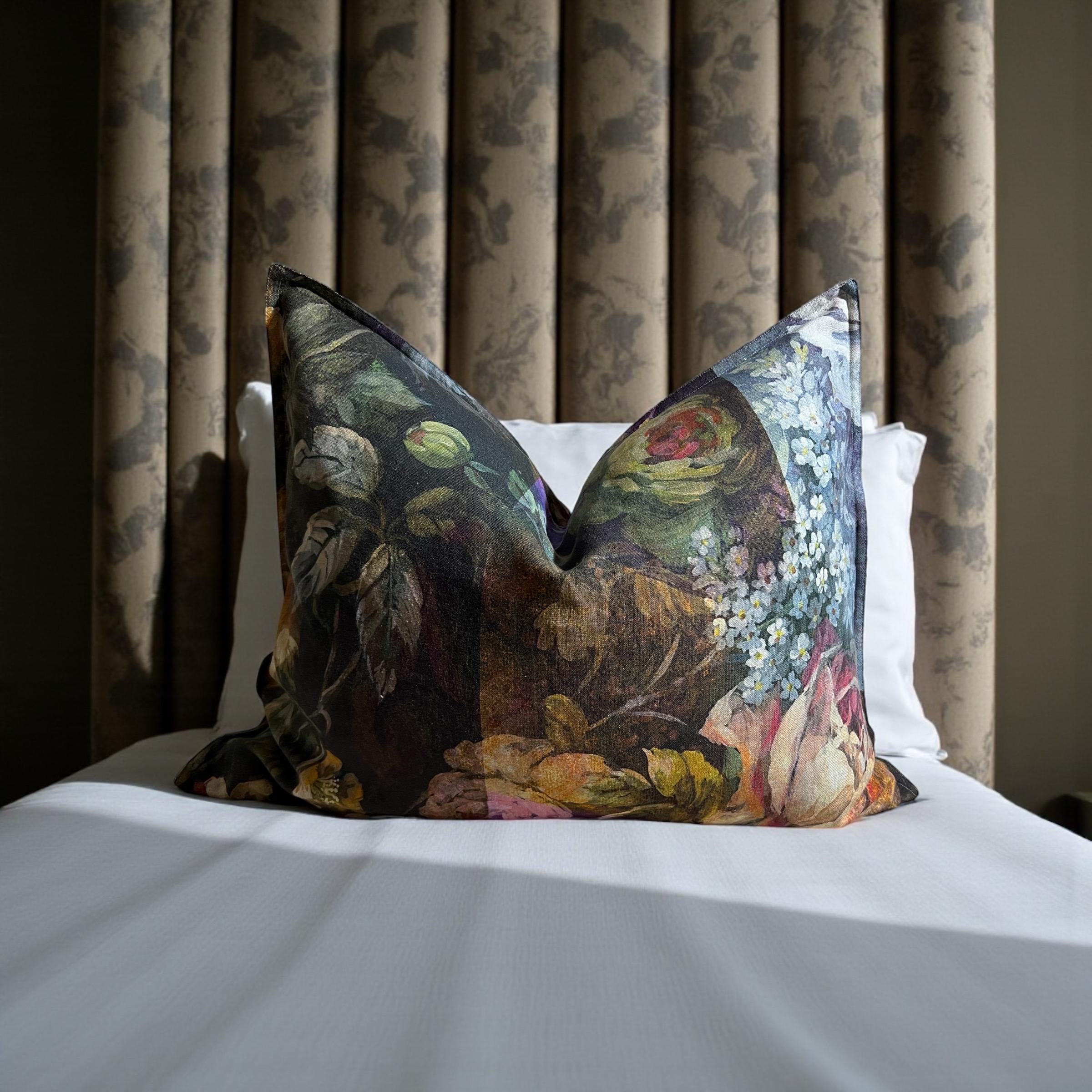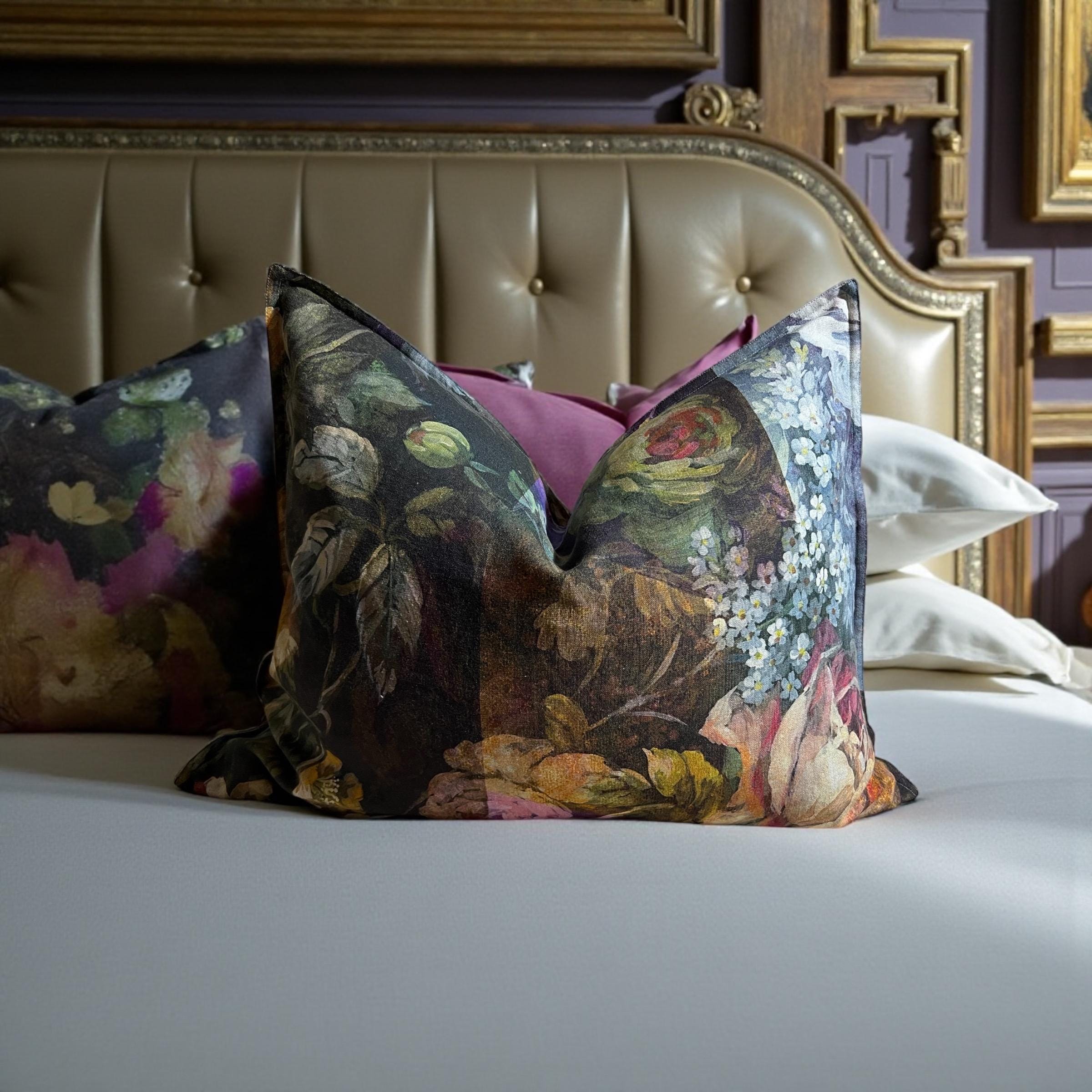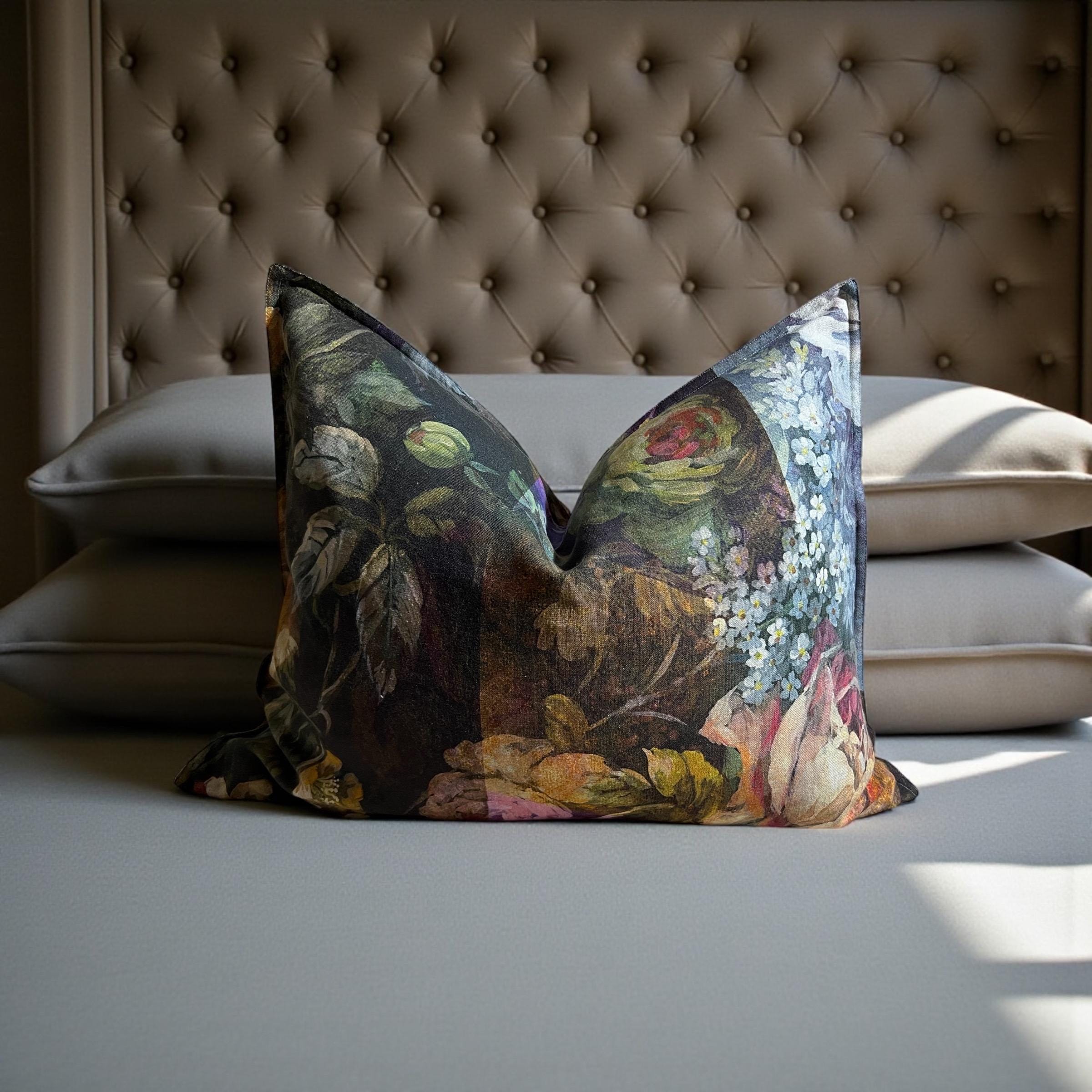 Rare Designers Guild MINAKARI linen pillow cover – luxury double-sided floral design. Same exquisite fabric on both sides, each side uniquely different.