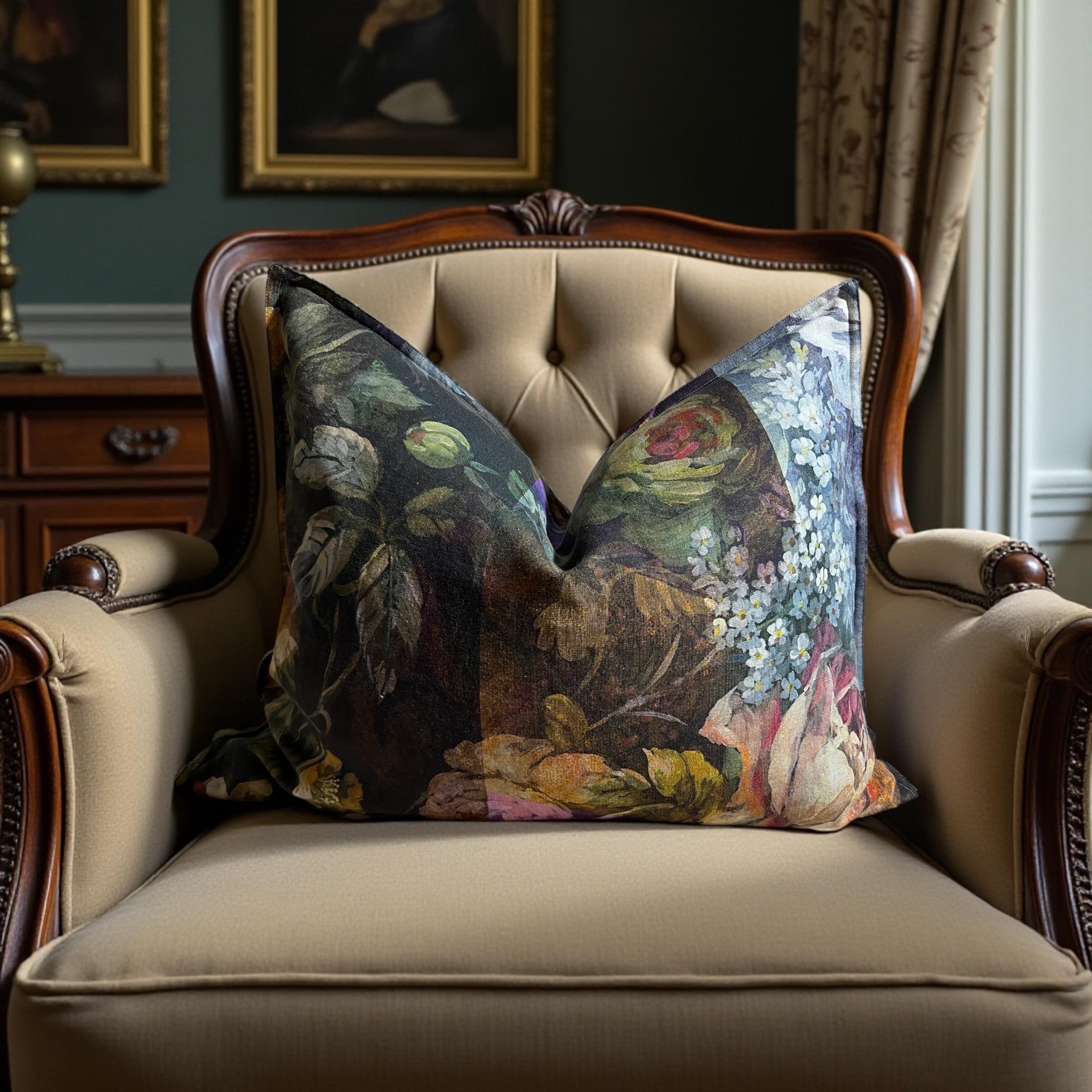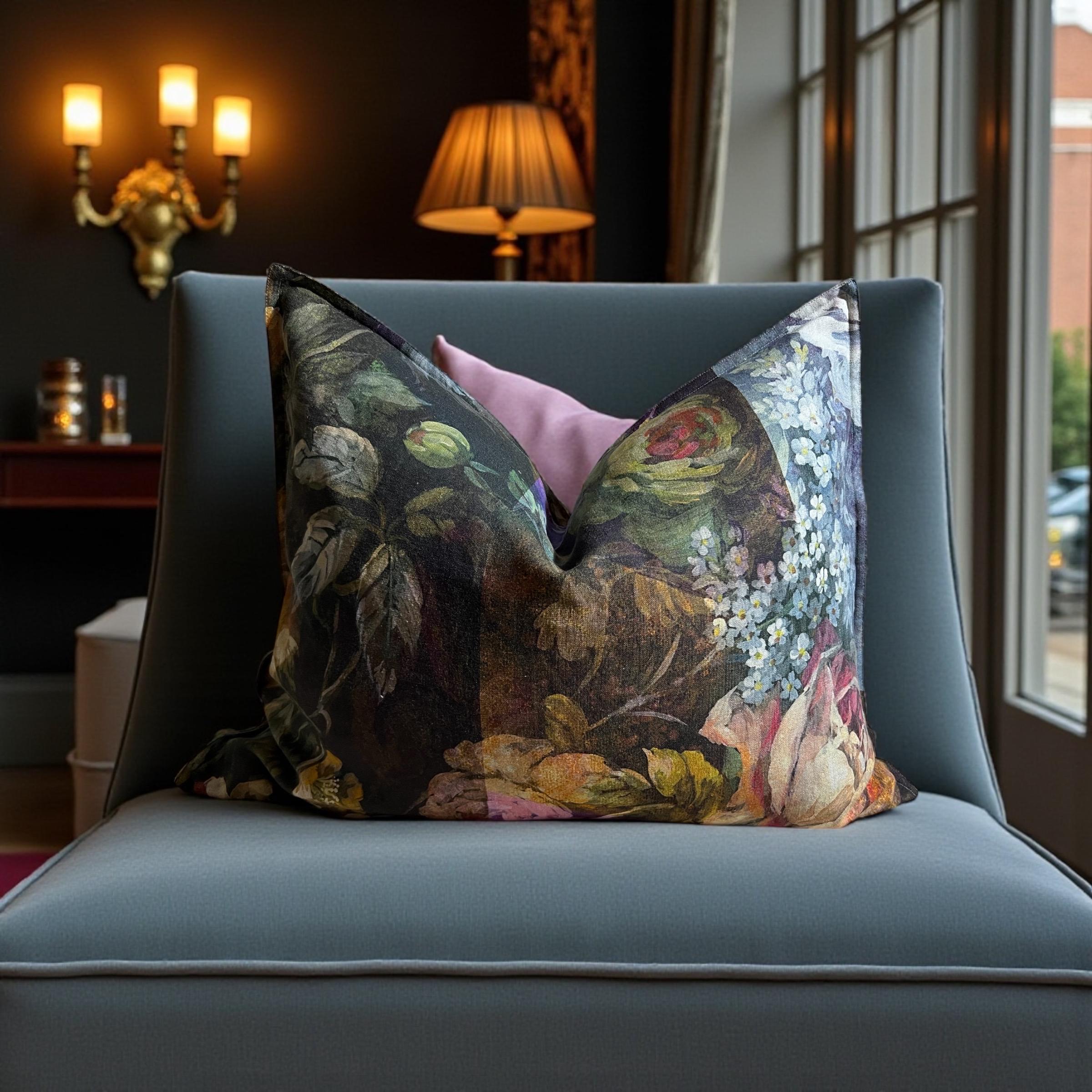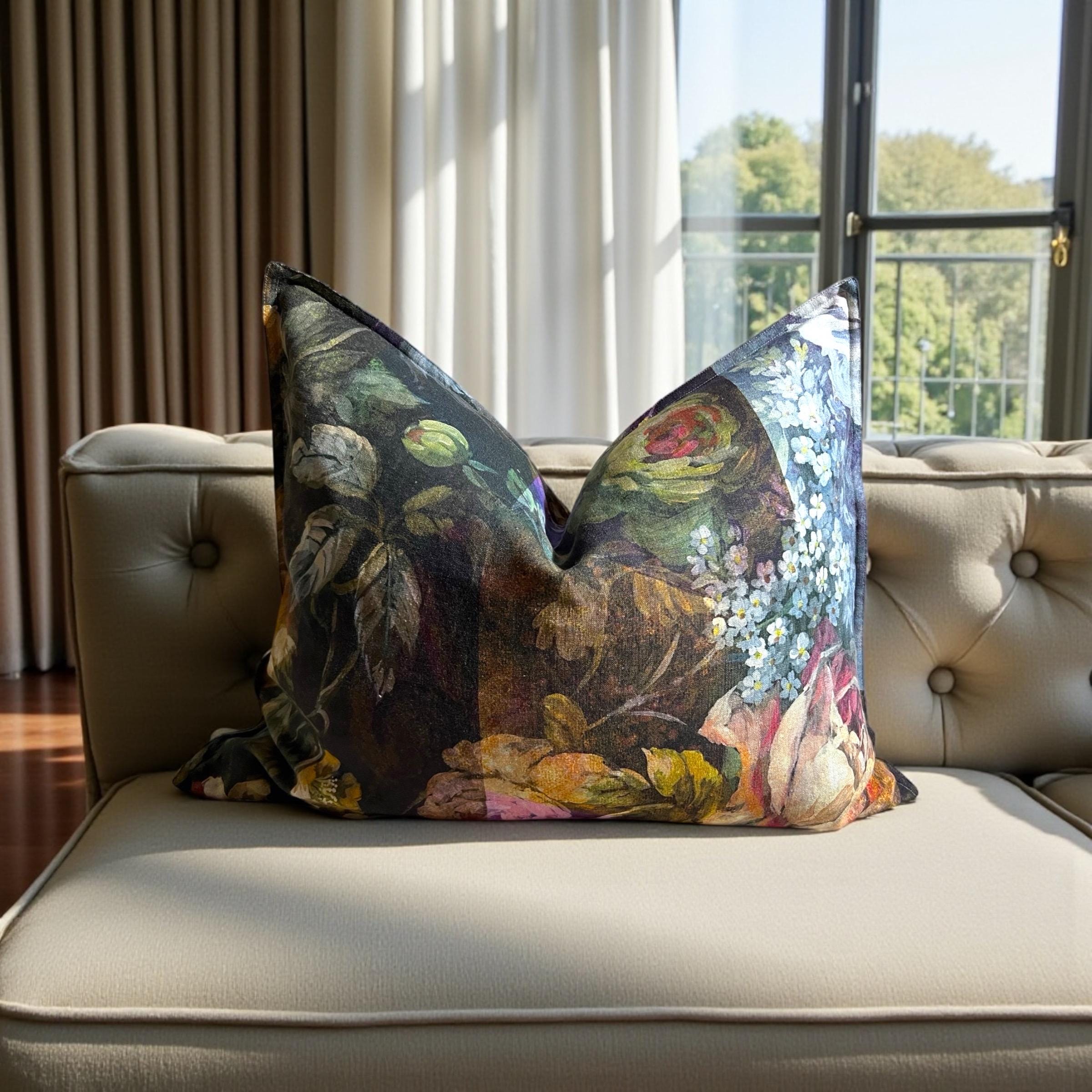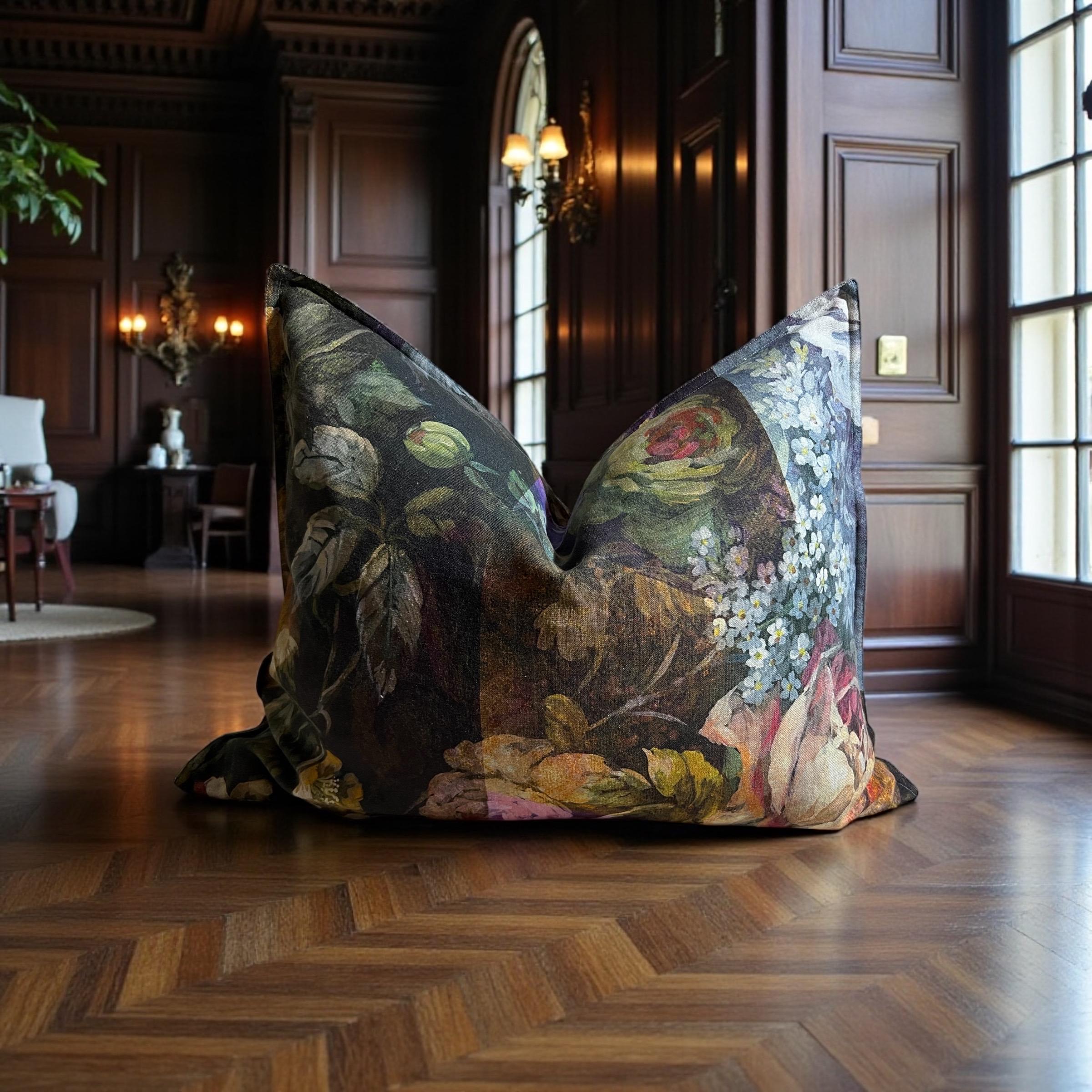 Rare Designers Guild MINAKARI linen pillow cover – luxury double-sided floral design. Same exquisite fabric on both sides, each side uniquely different.