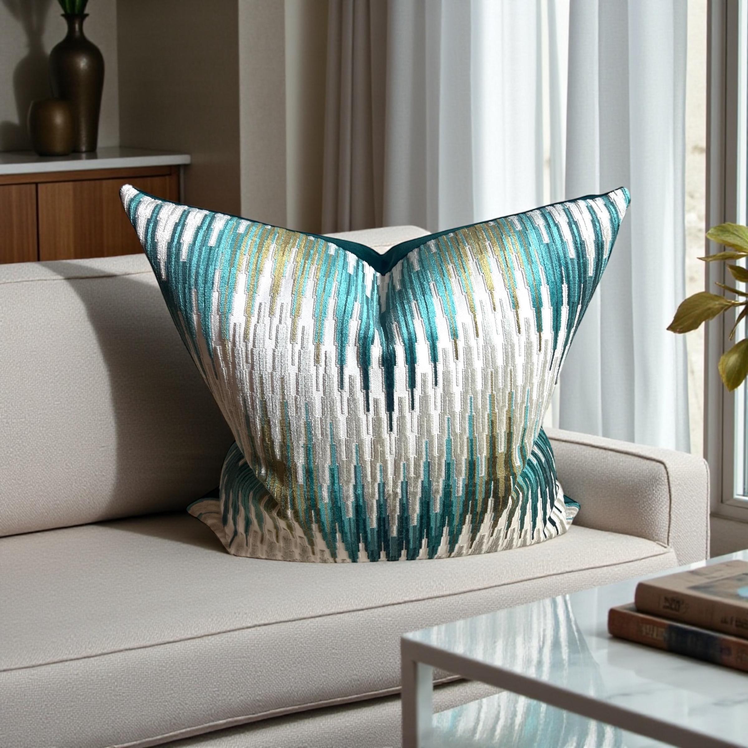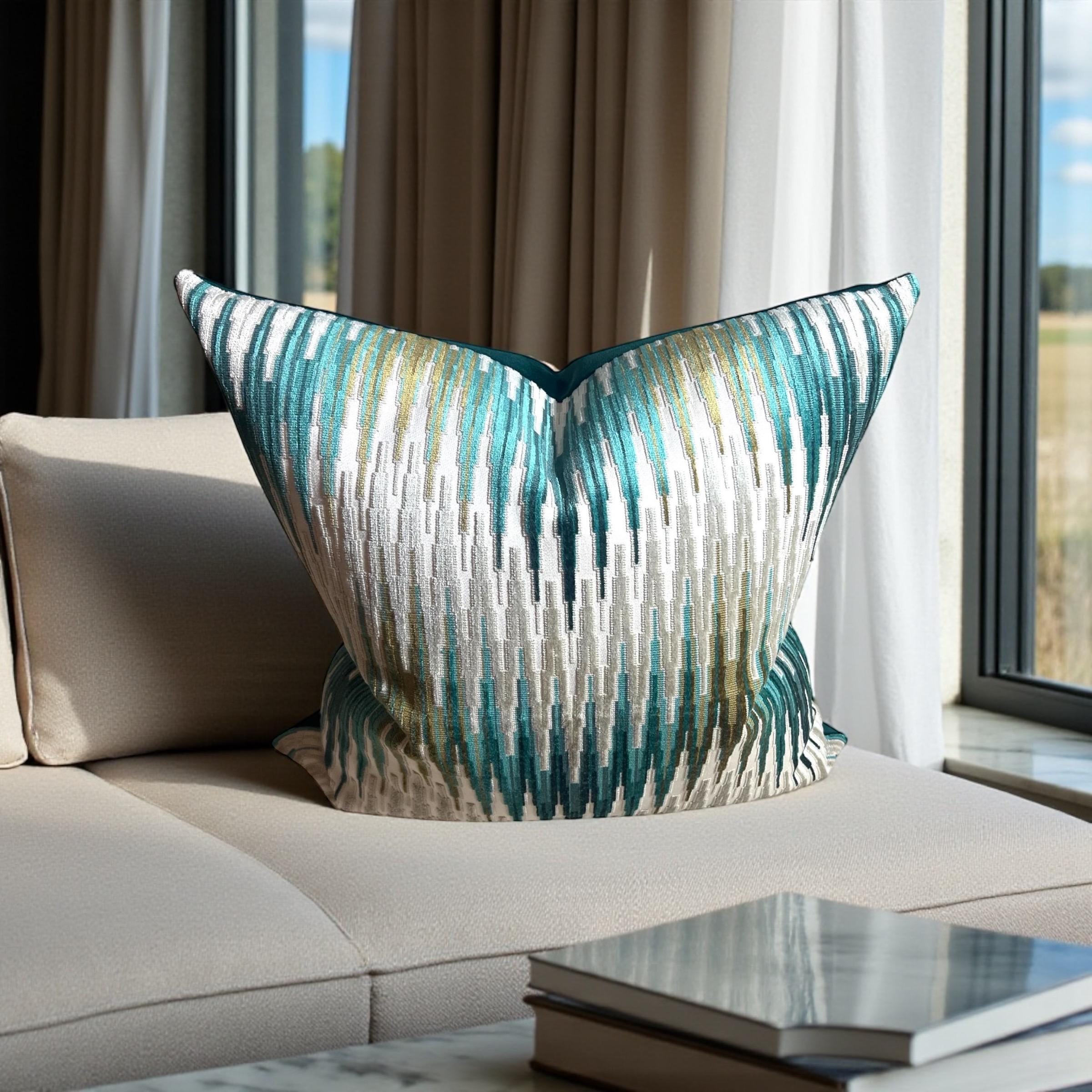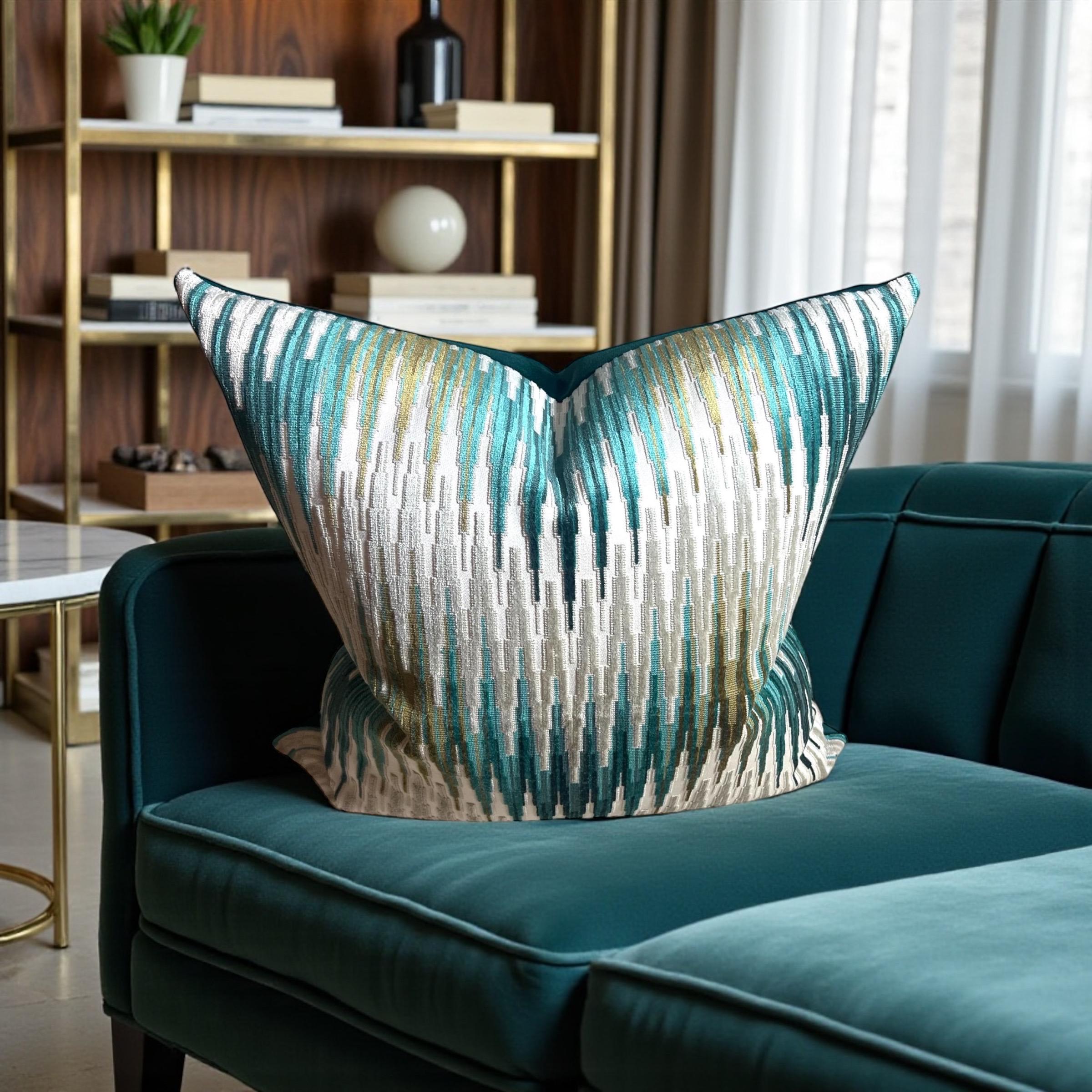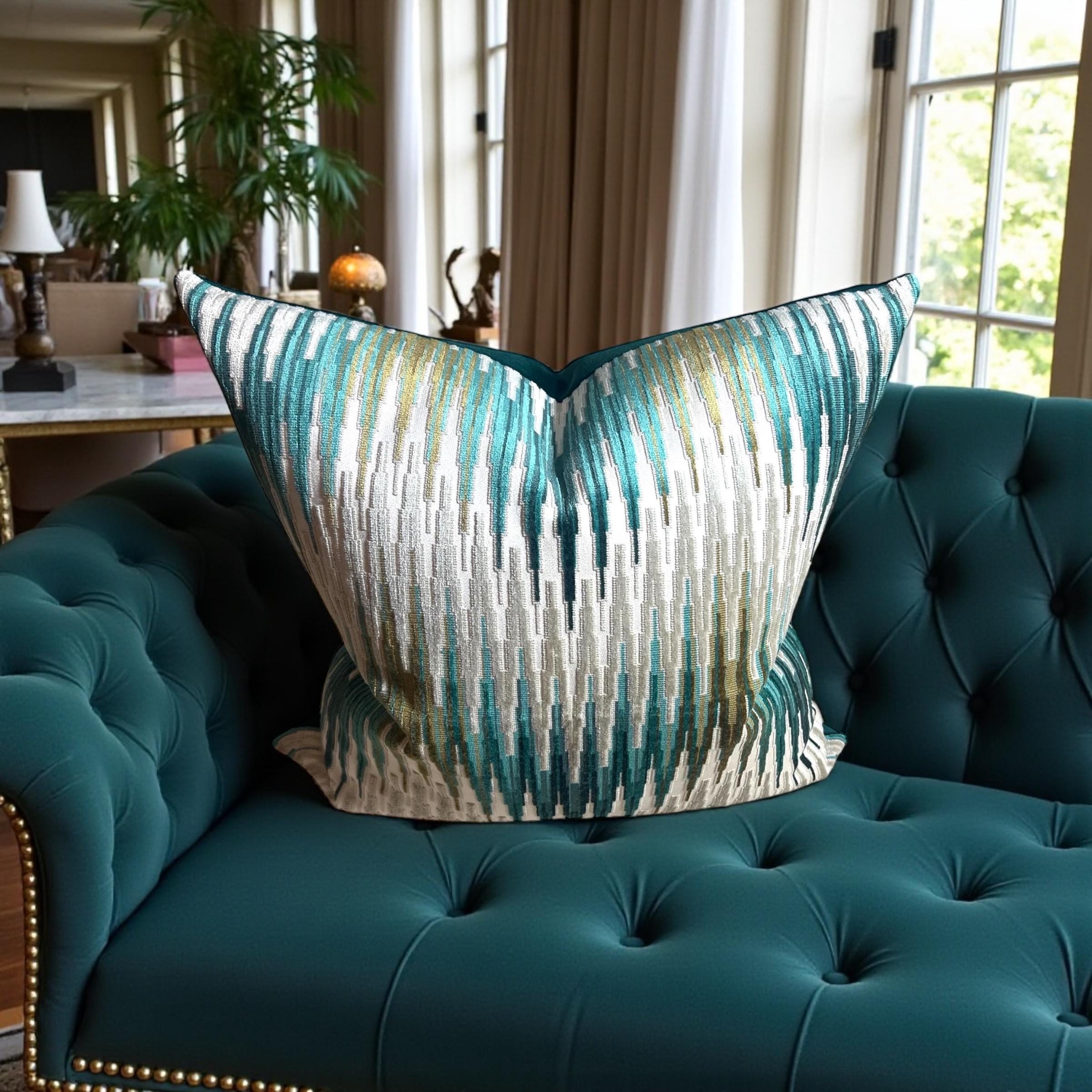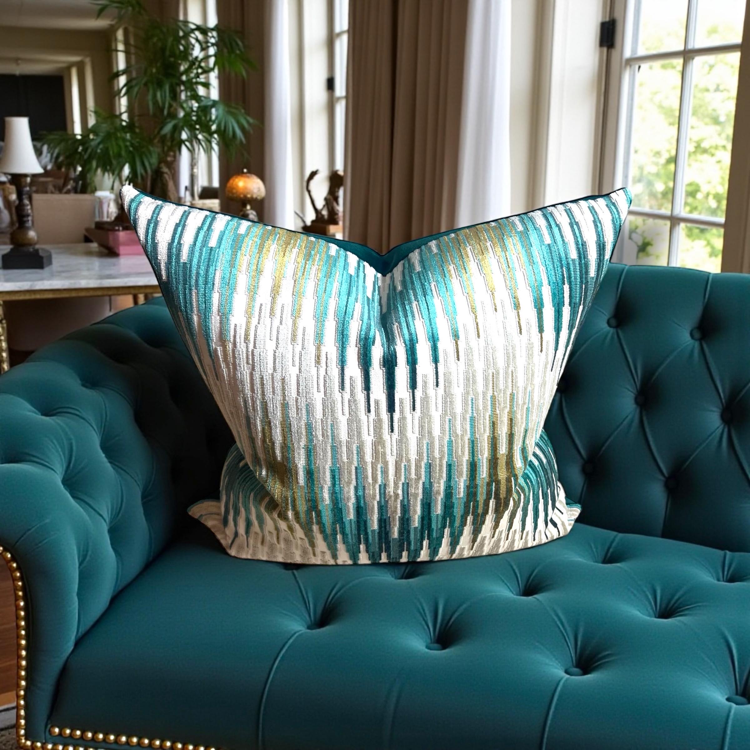 Luxury Handmade Geometric Romo Quintero Jade Pillow Cover: Luxury Turquoise Gold Velvet, 22x22