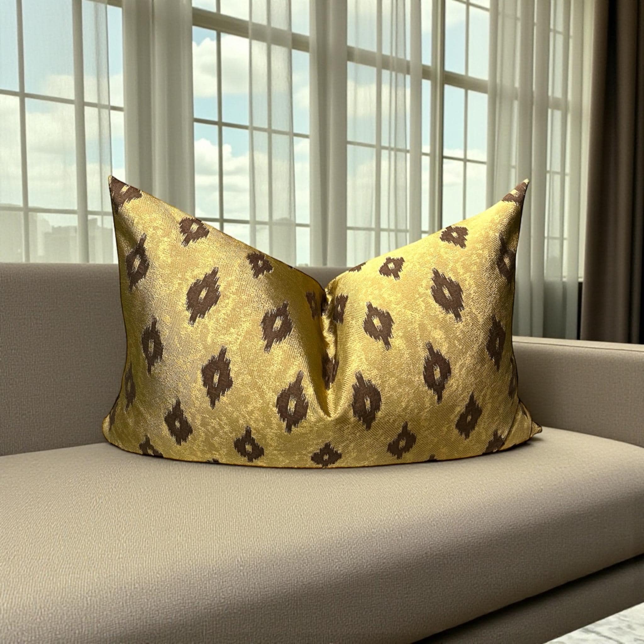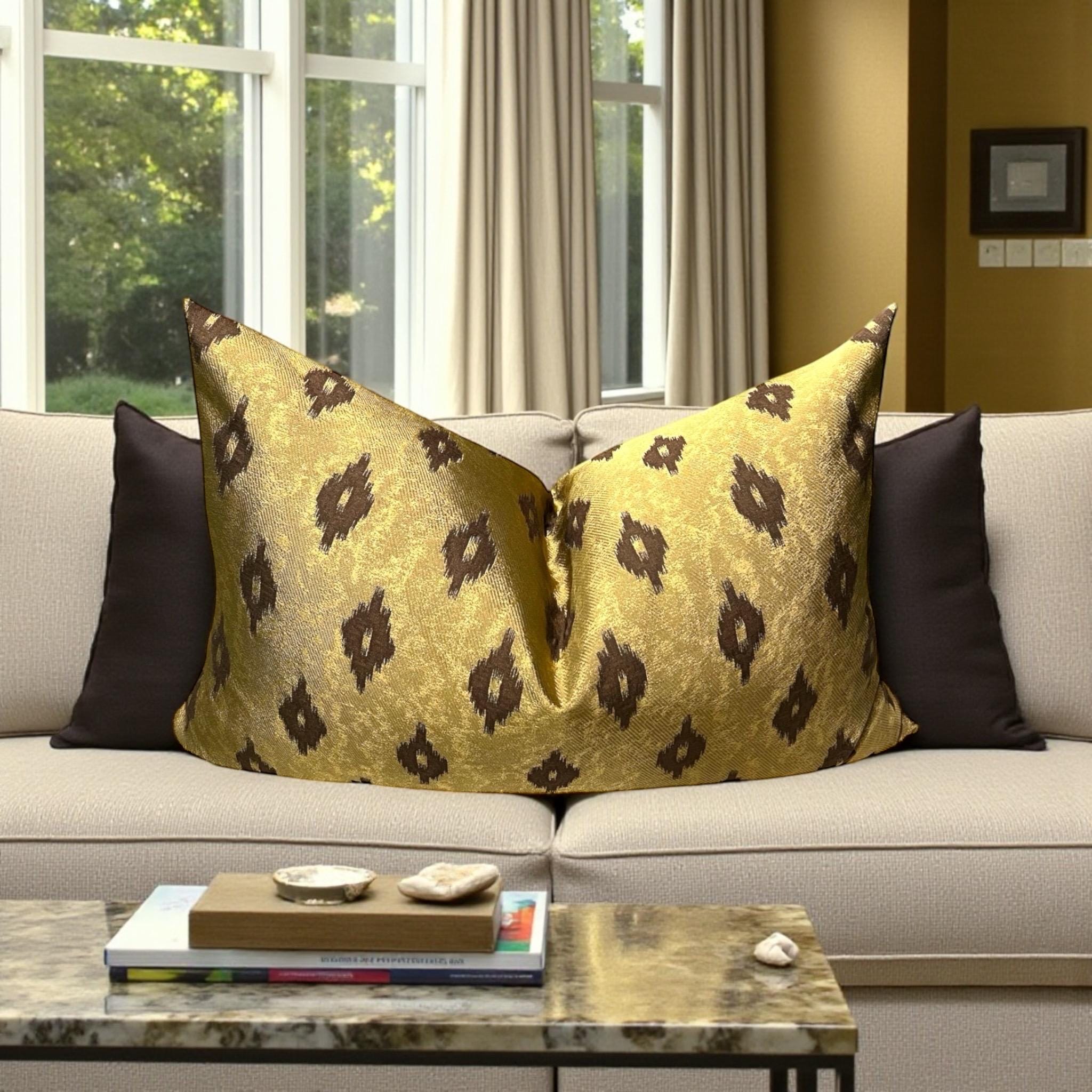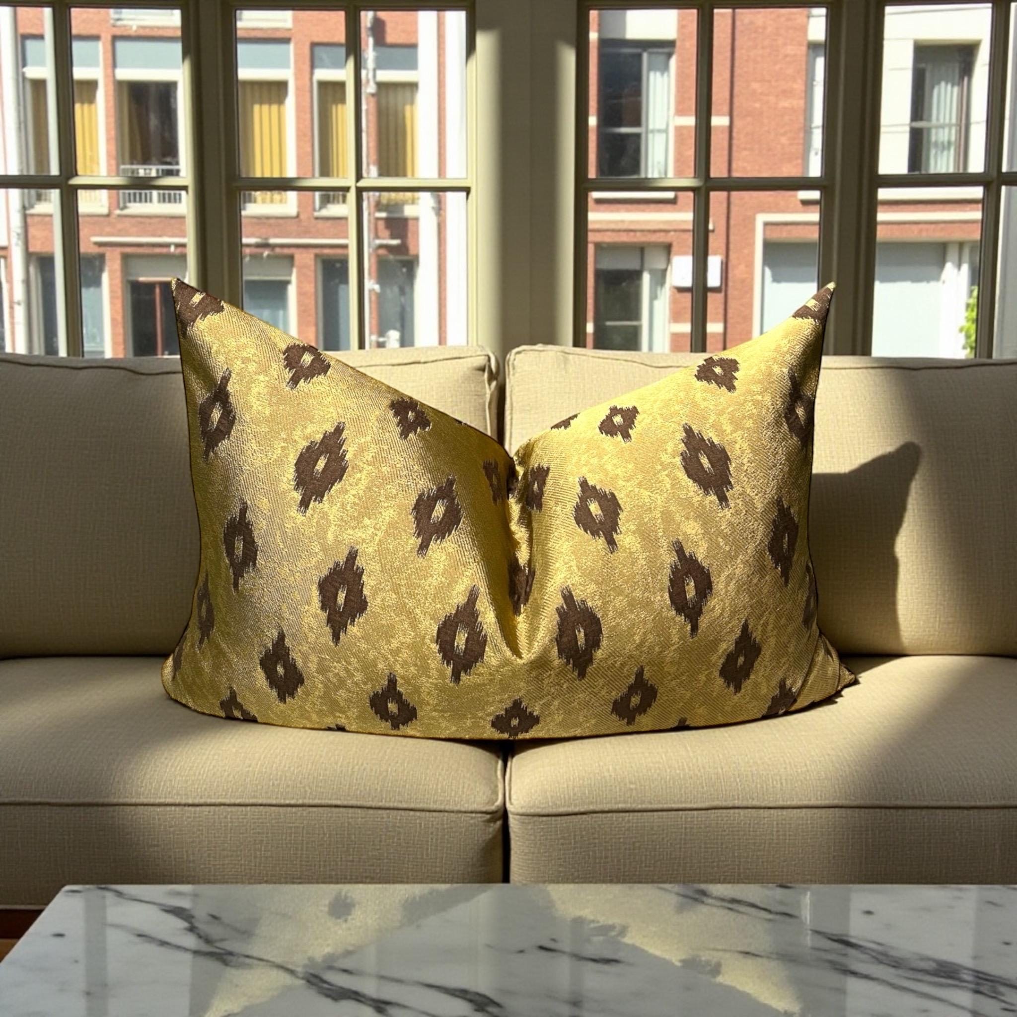 Luxury Accent designer gold Accent ArtDeco pillow cover for holiday décor, made from rare Italian designer woven Brocade in shimmering gold and brown.