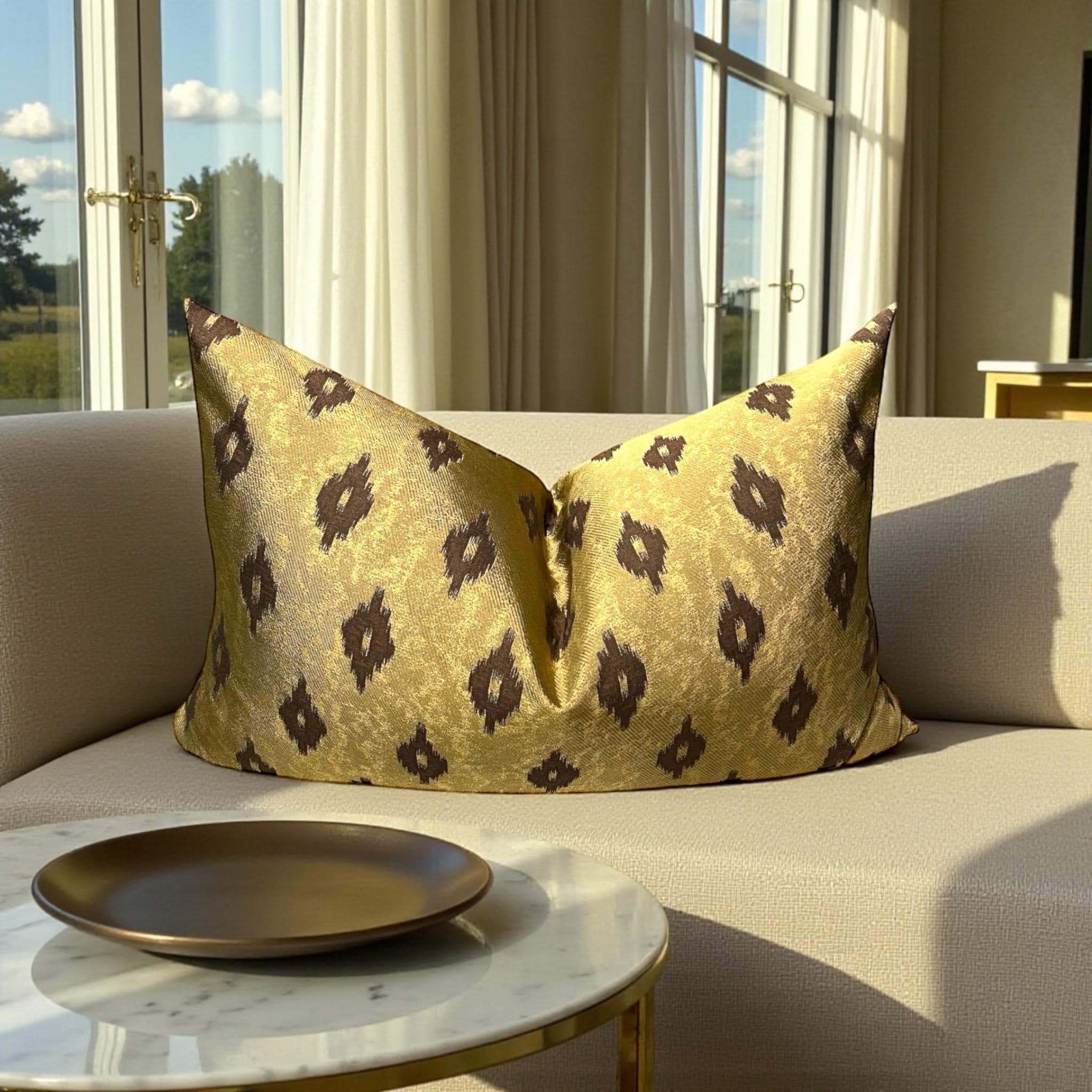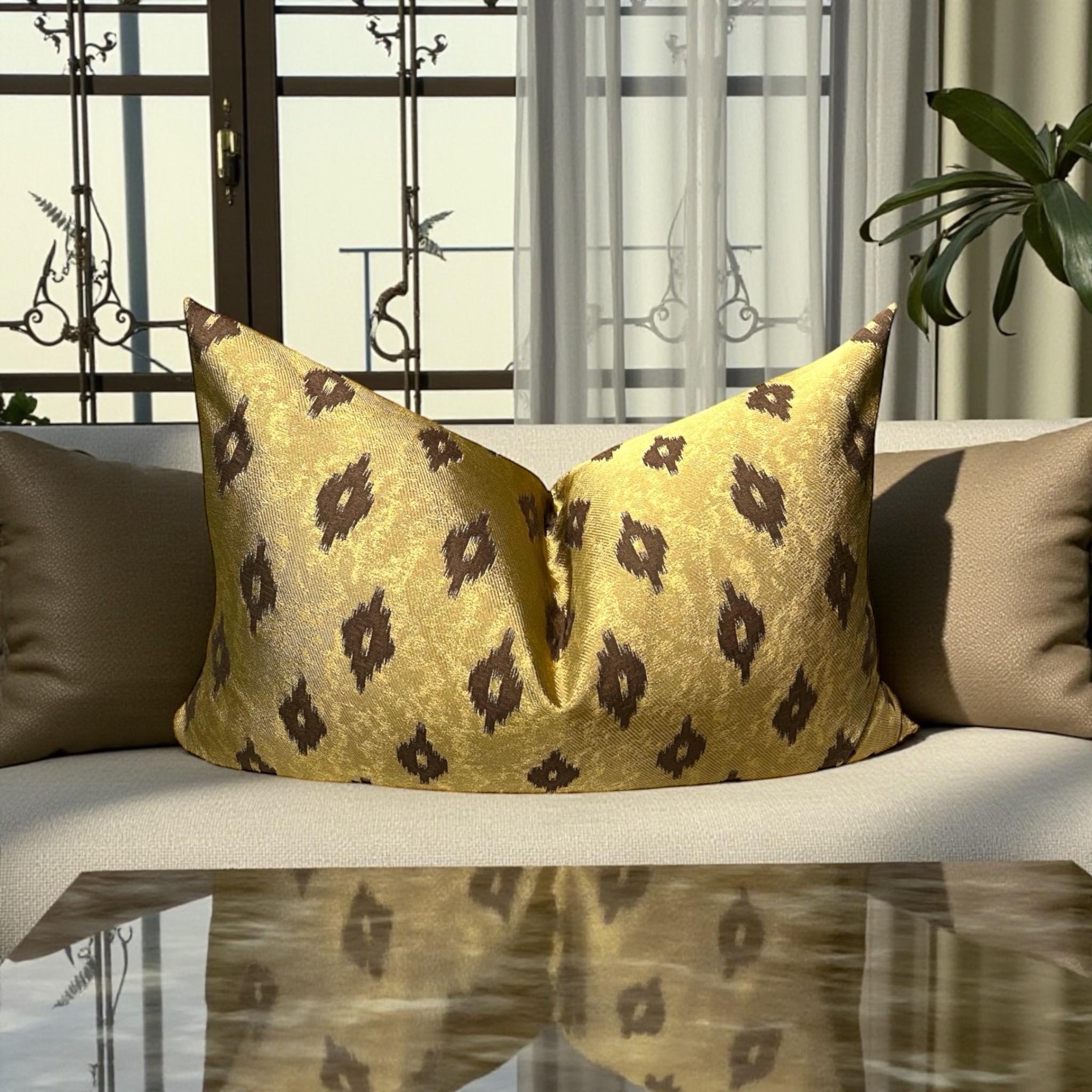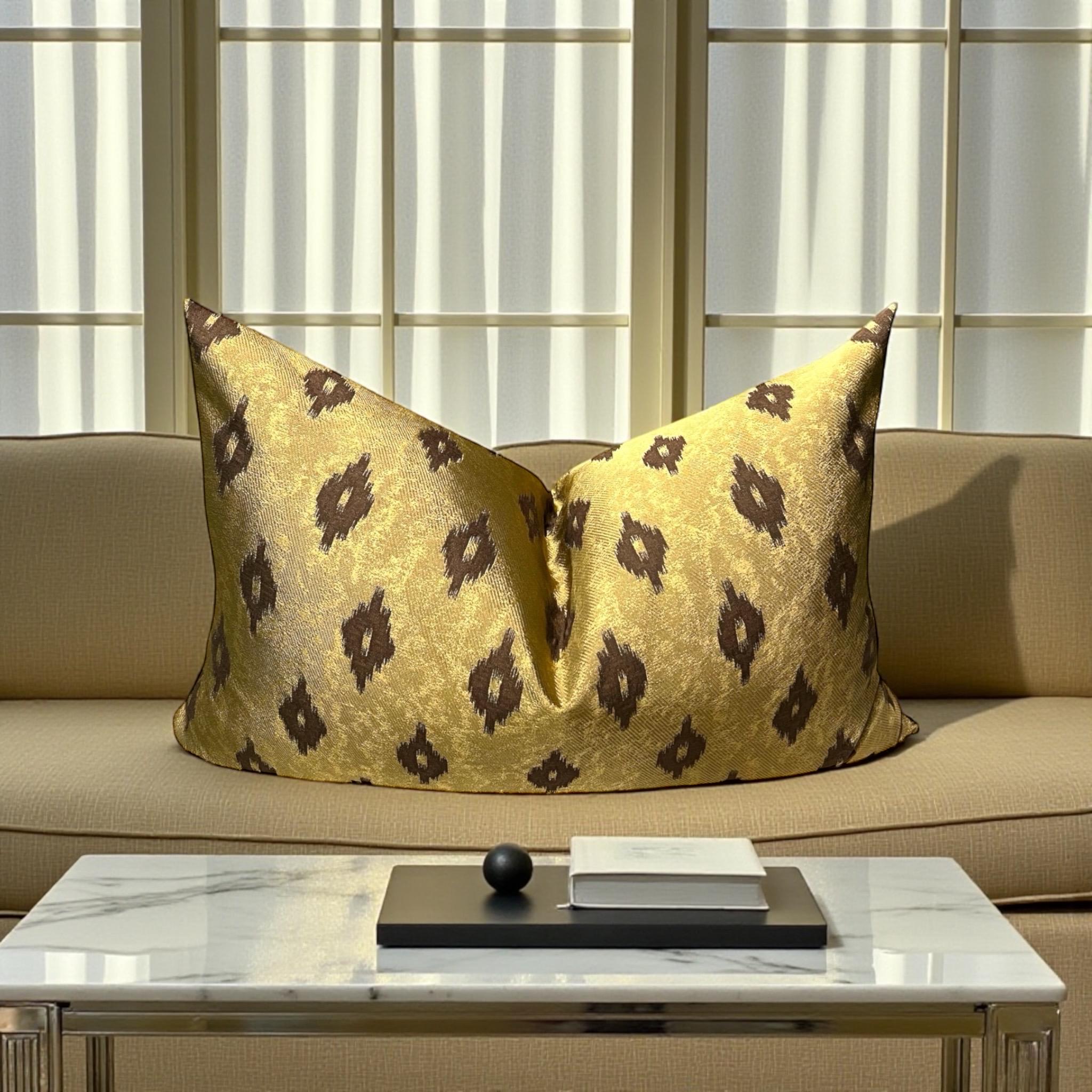 Luxury Accent designer gold Accent ArtDeco pillow cover for holiday décor, made from rare Italian designer woven Brocade in shimmering gold and brown.