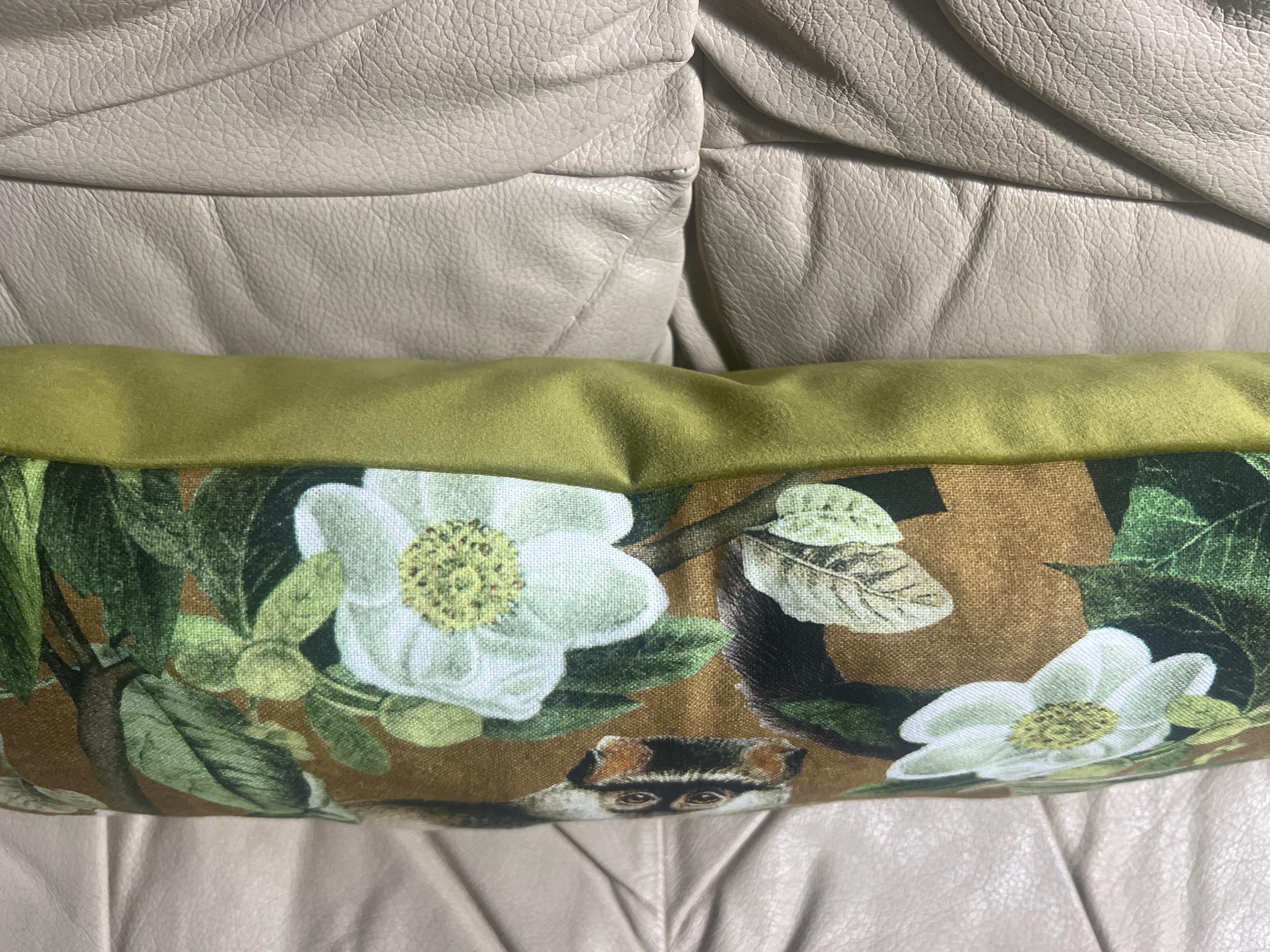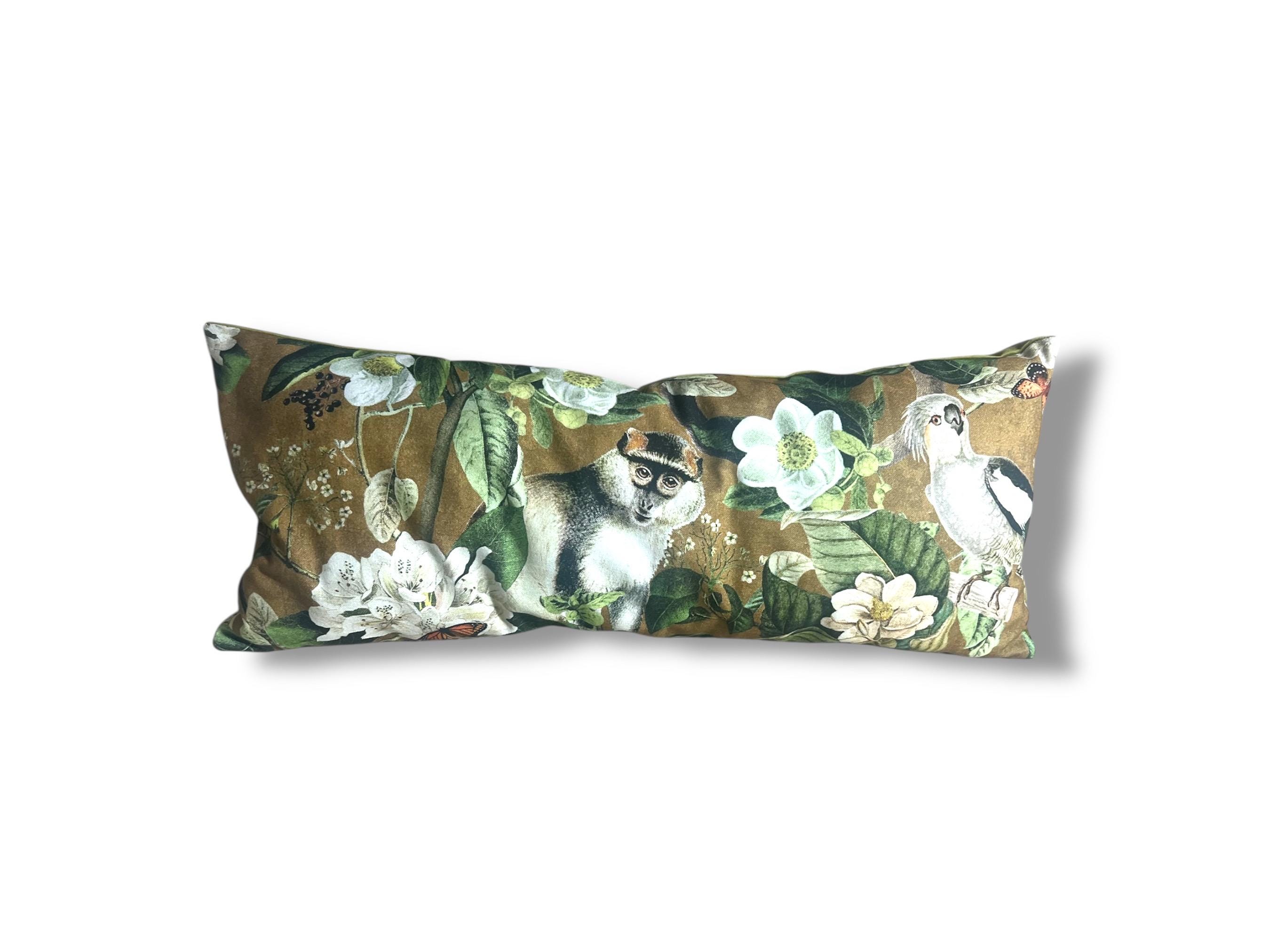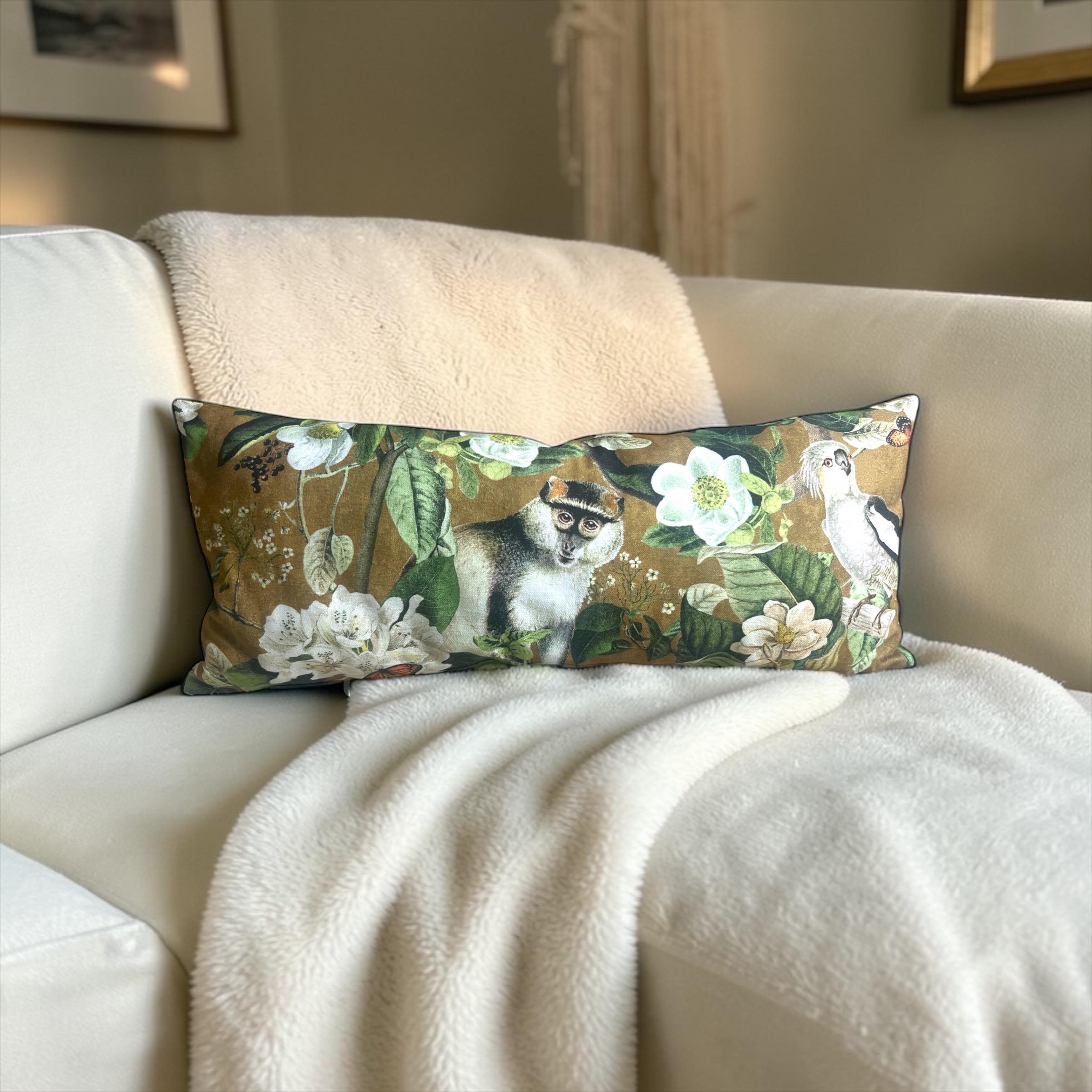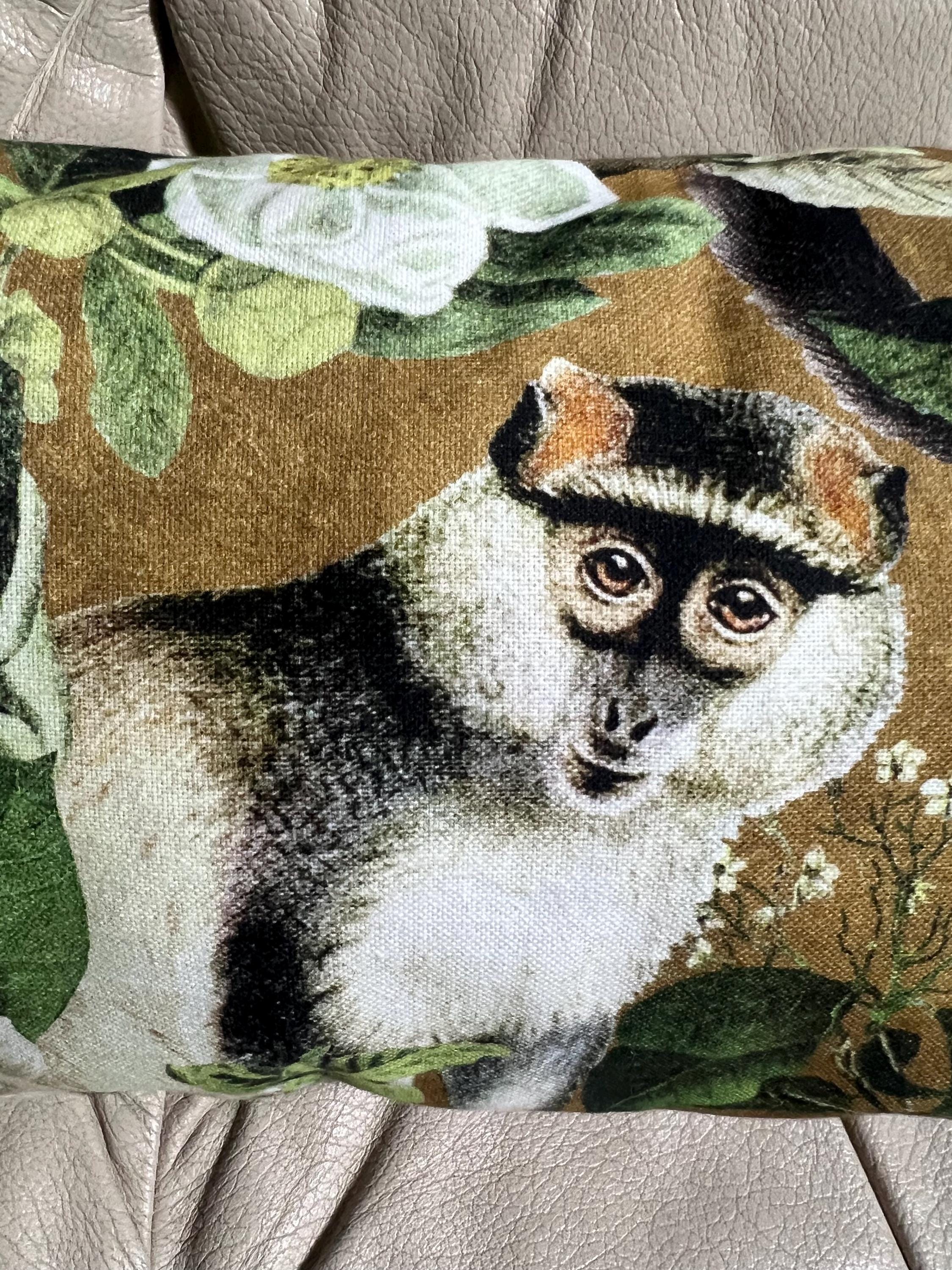 Luxury Lemur Jungle Velvet Lumbar Pillow Cover: Exotic Botanical Decor