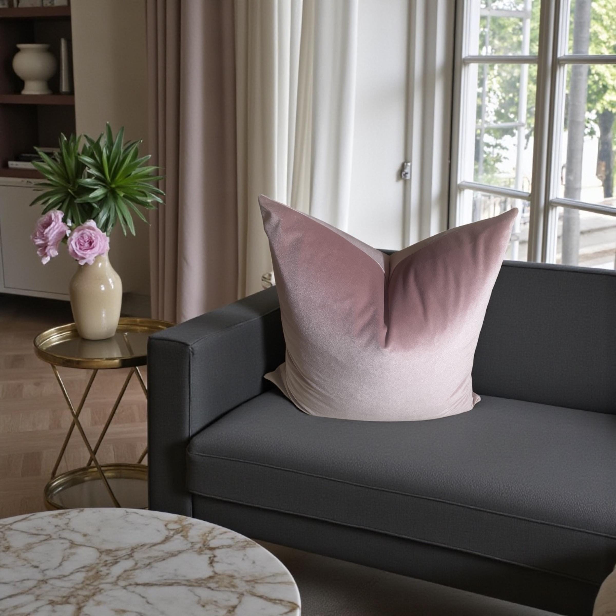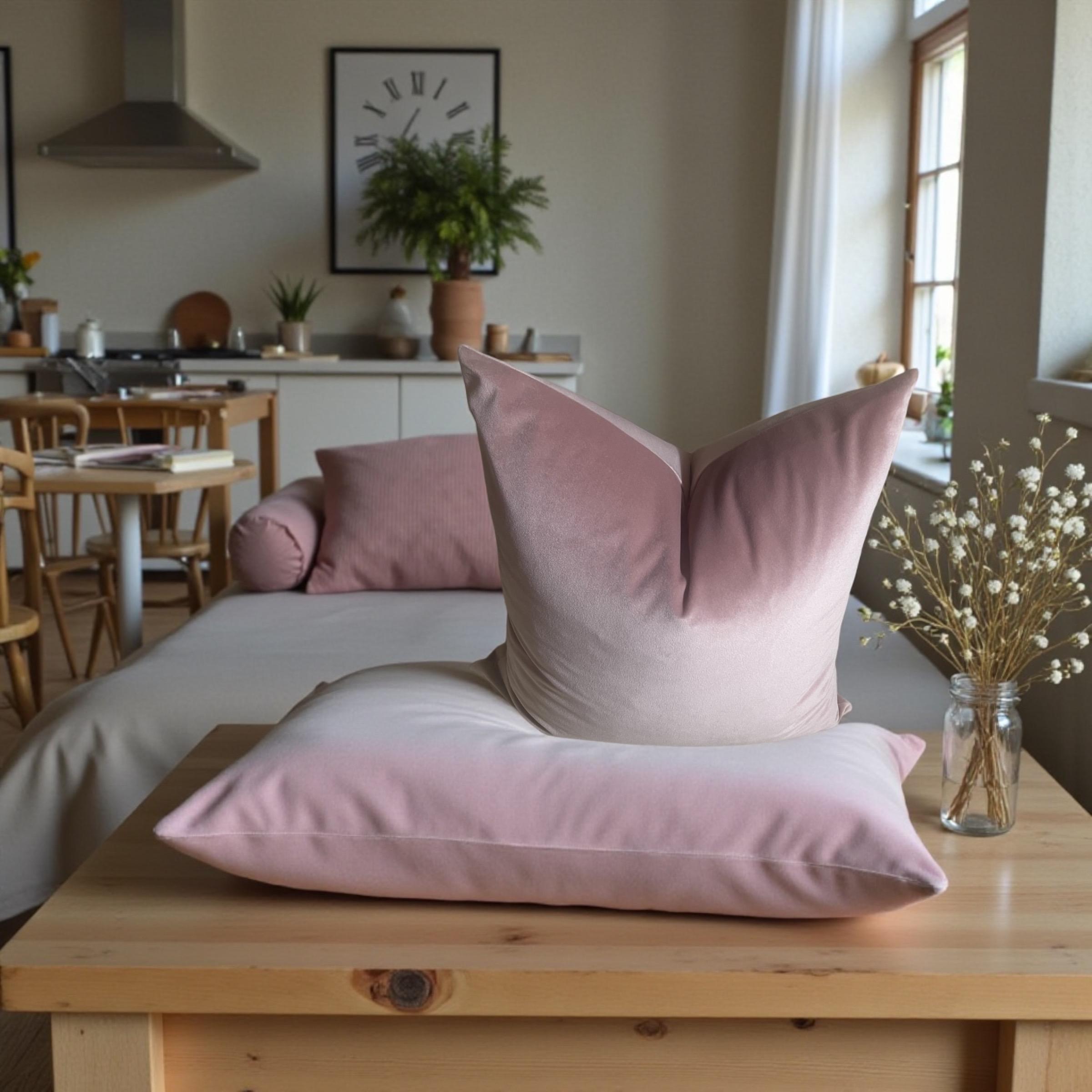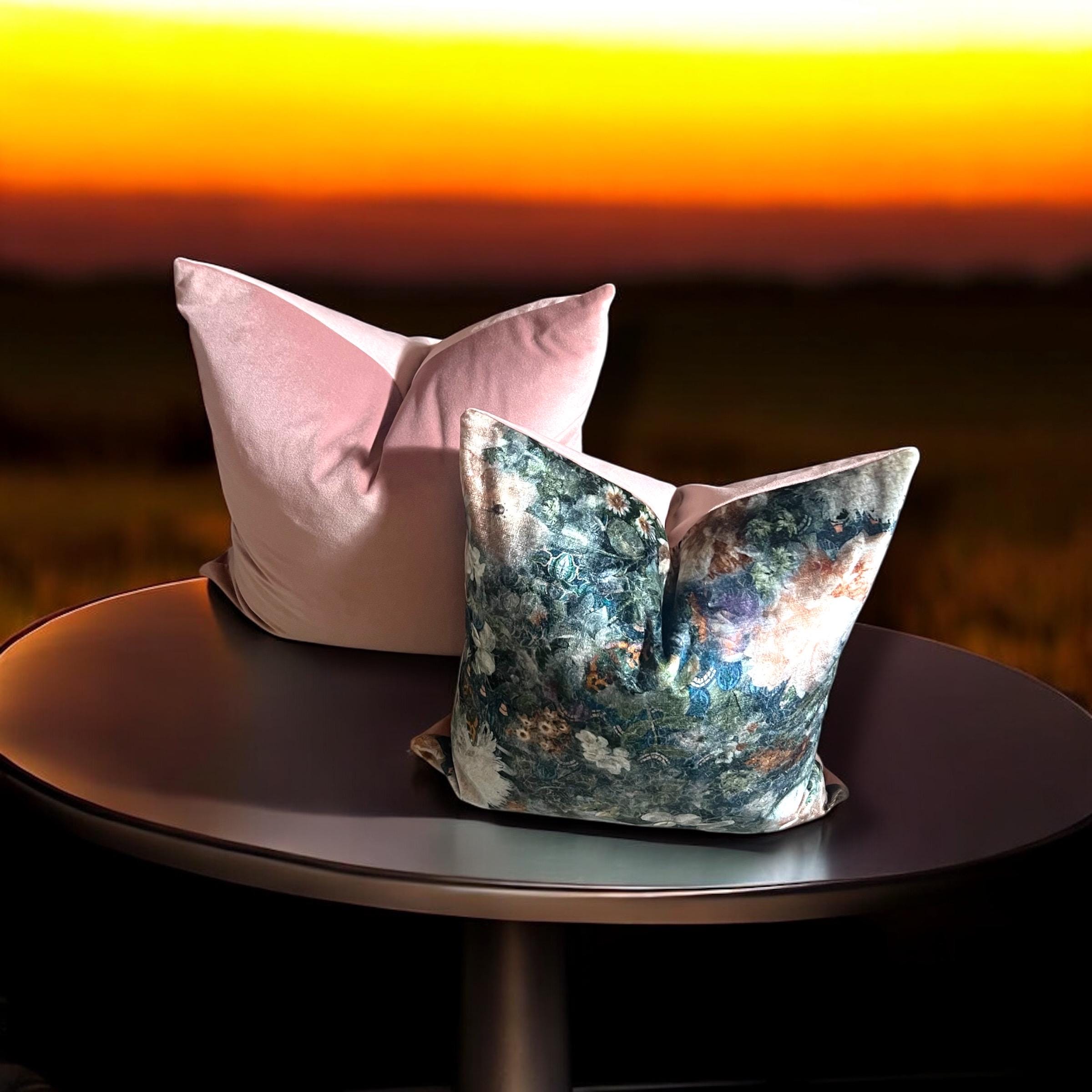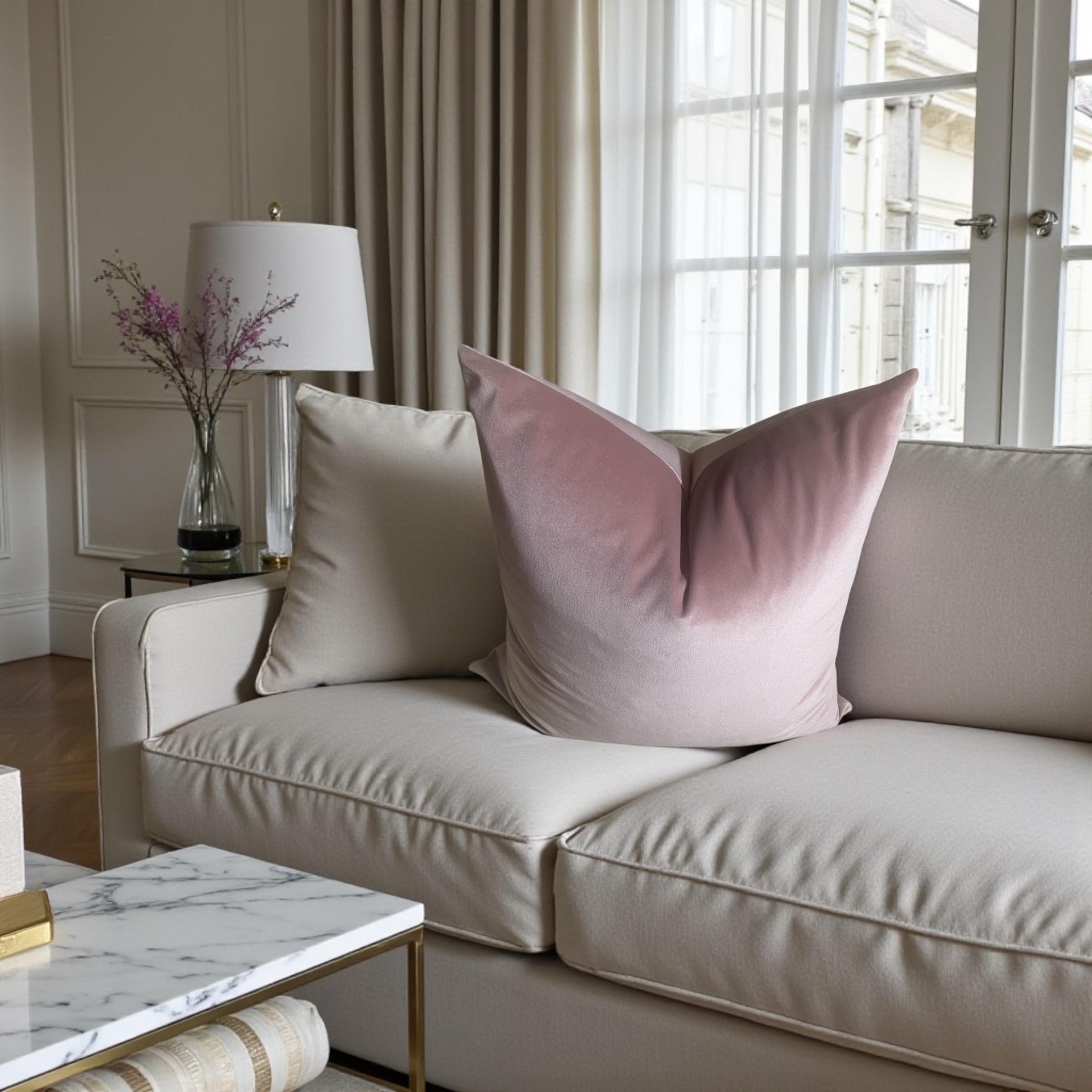 As shown in the listing photos, this blush pillow beautifully complements the floral velvet cushion from my shop. The shared backing fabric—Alvar Quartz velvet—ties them together effortlessly.