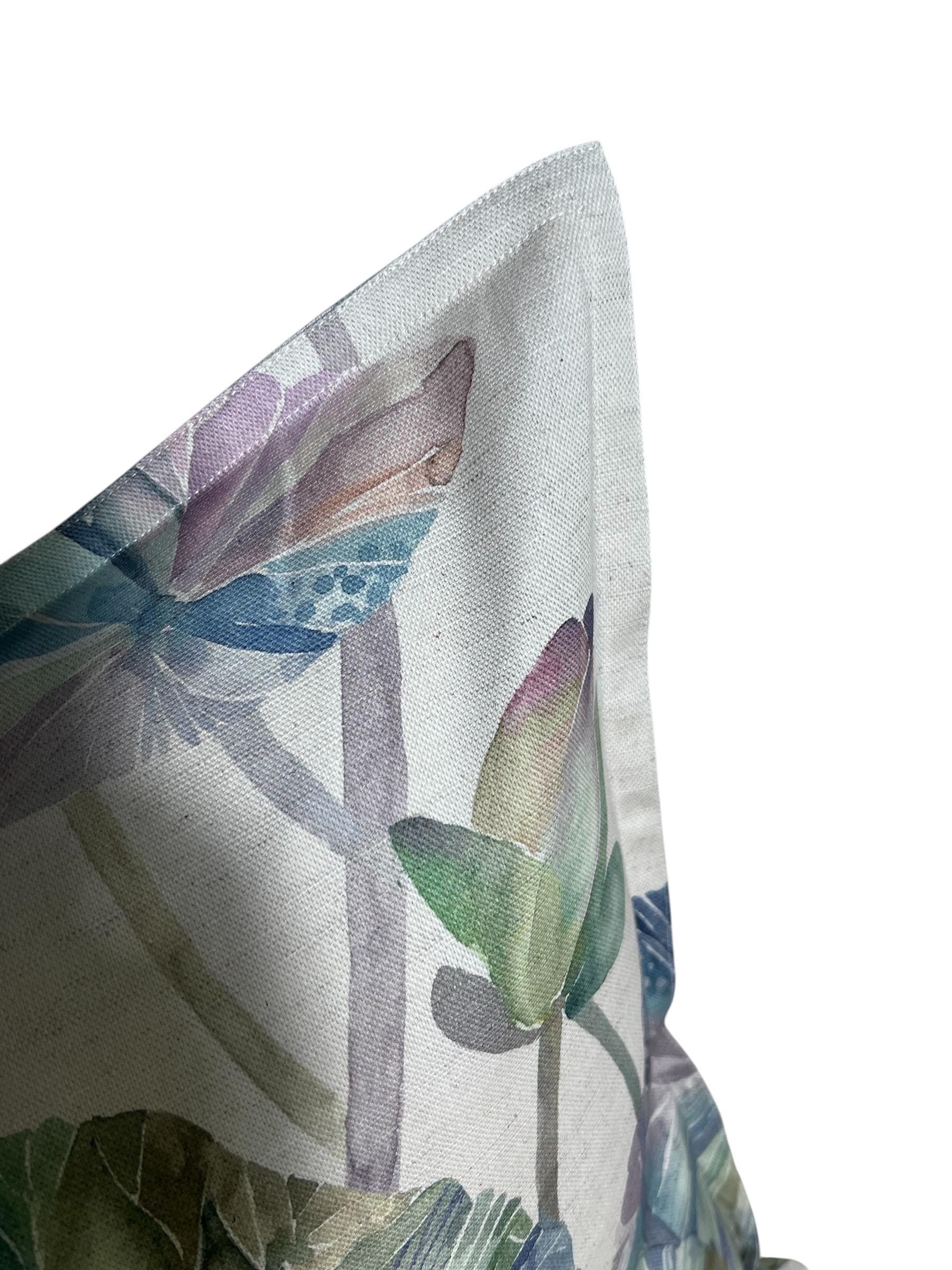 • Showcasing a beautifully hand-painted Lotus leaf motif, this fabric was digitally printed to perfectly capture the original artwork by Voyage Maison’s in-house artists.