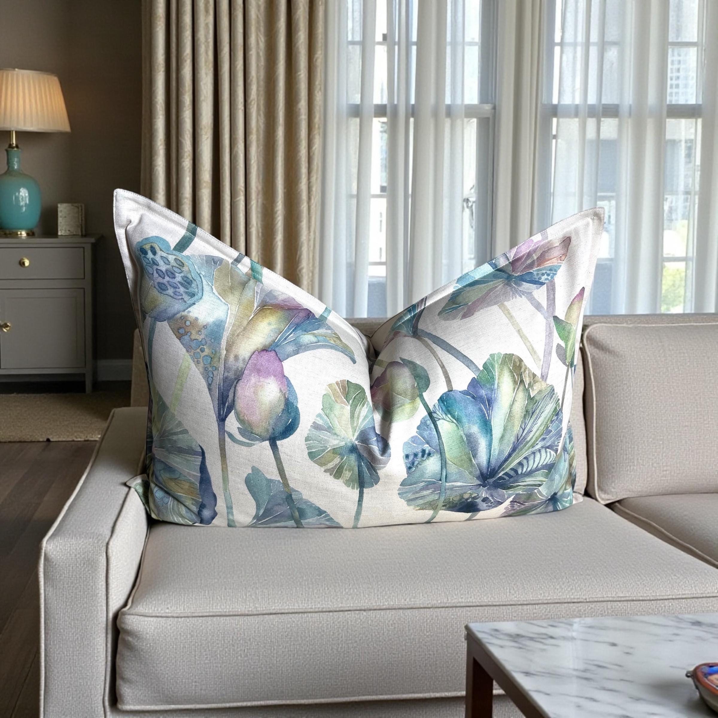 Handmade Lotus Leaf Pillow Cover: Voyage Maison Designer Linen Cushion 18x26