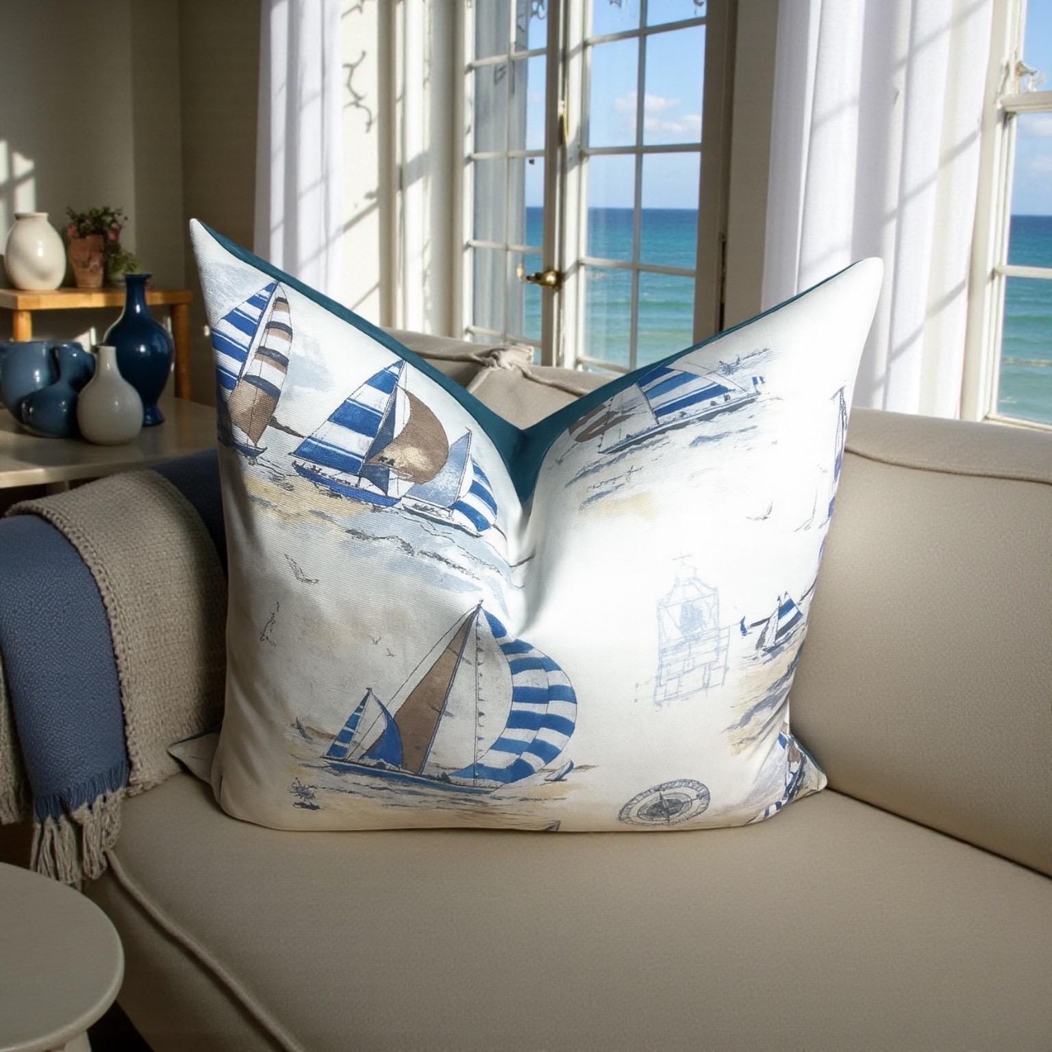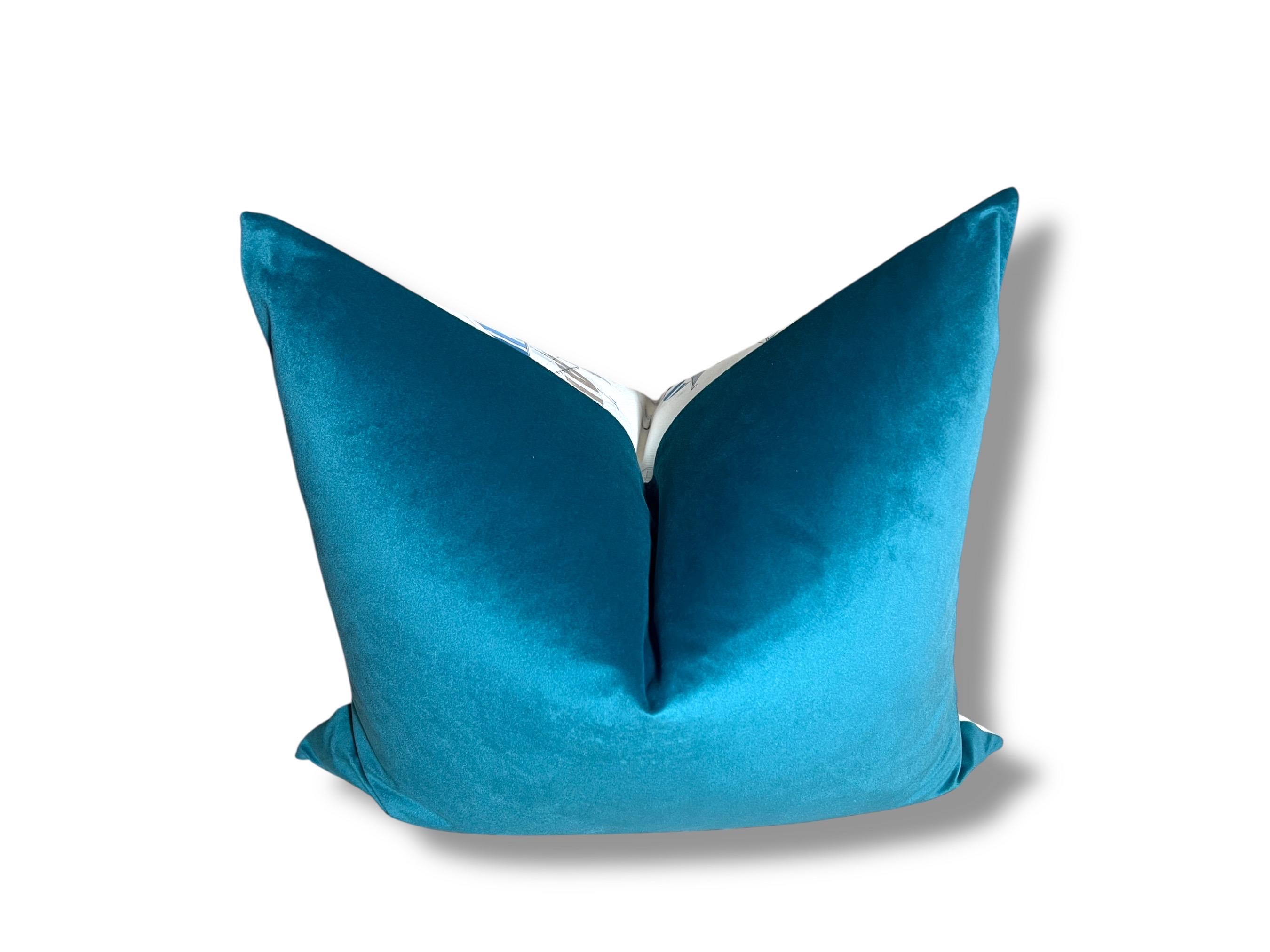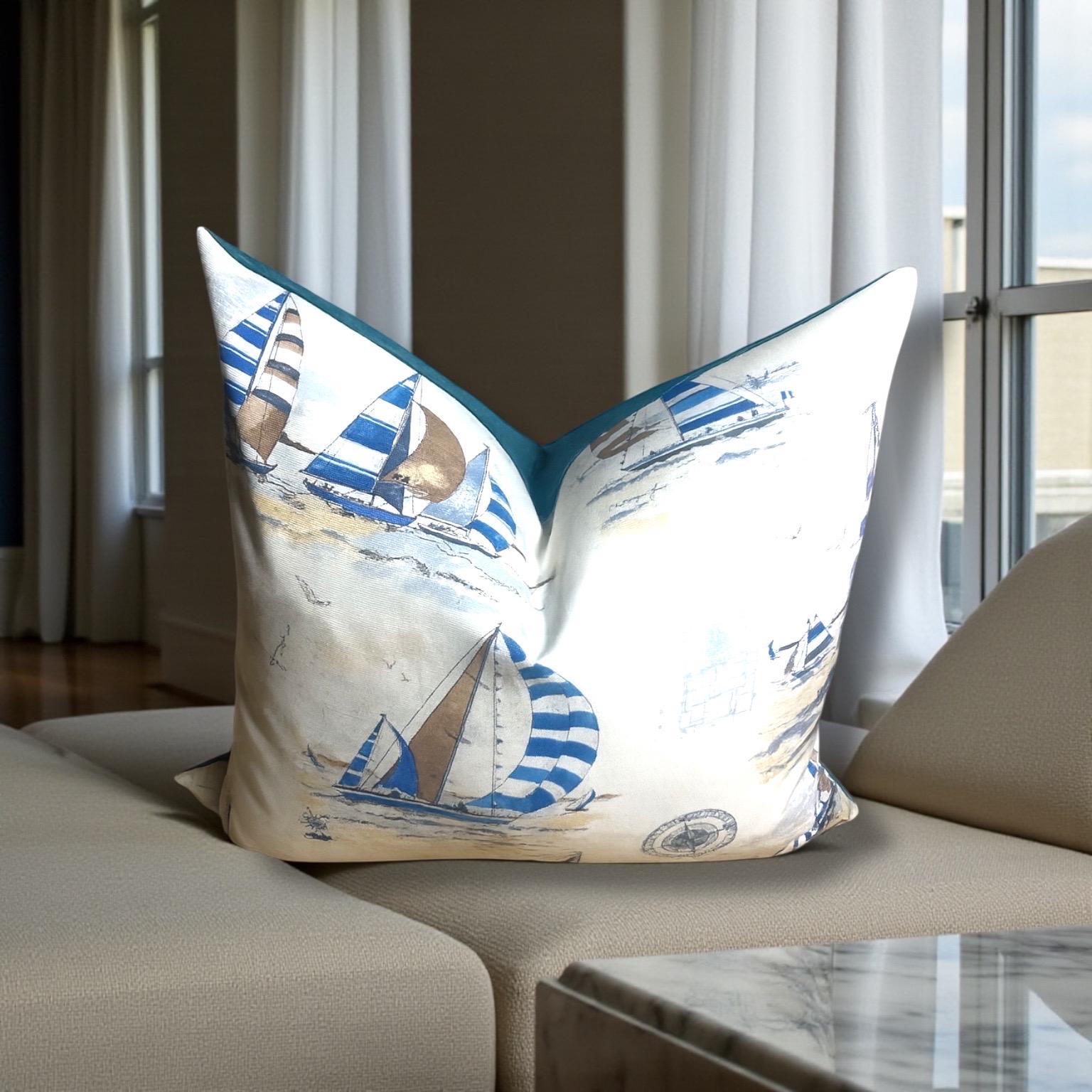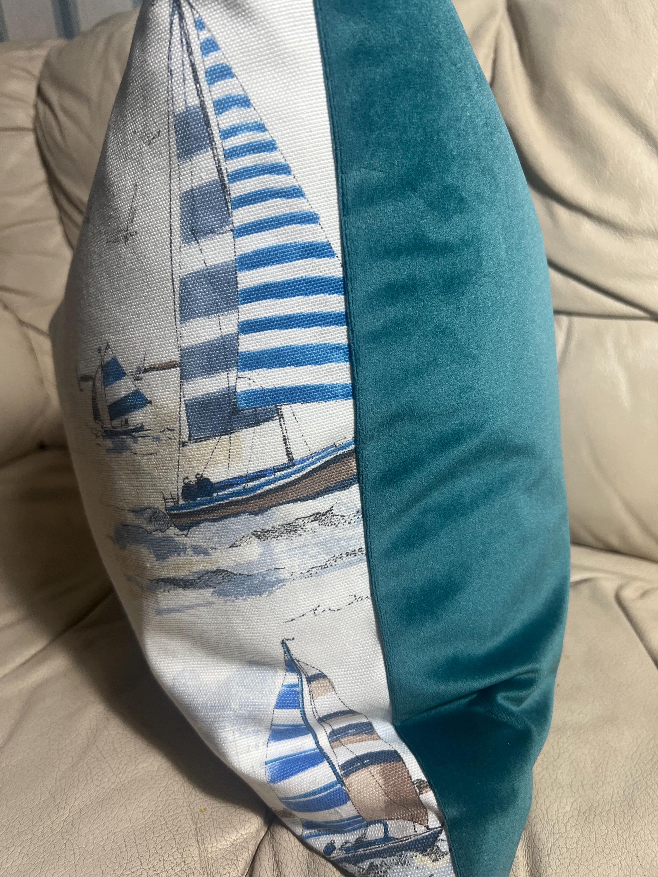 Handmade Nautical Pillow Cover 18x20” – Clarke & Clarke Cotton, Kingfisher Velvet