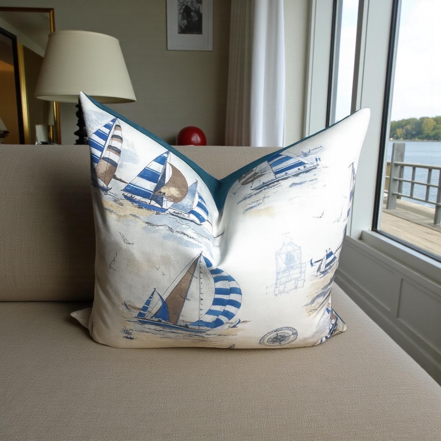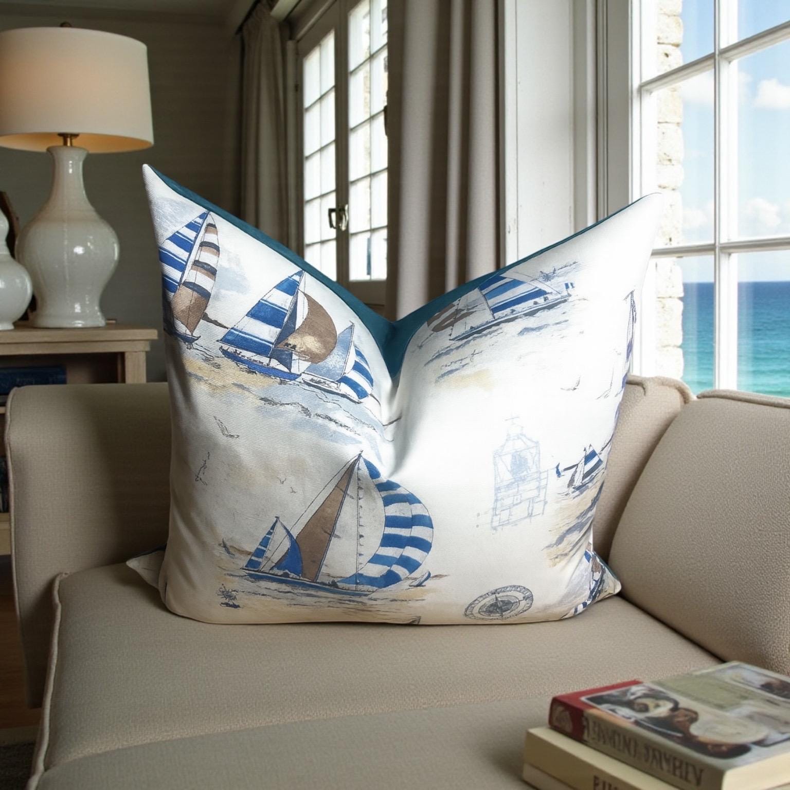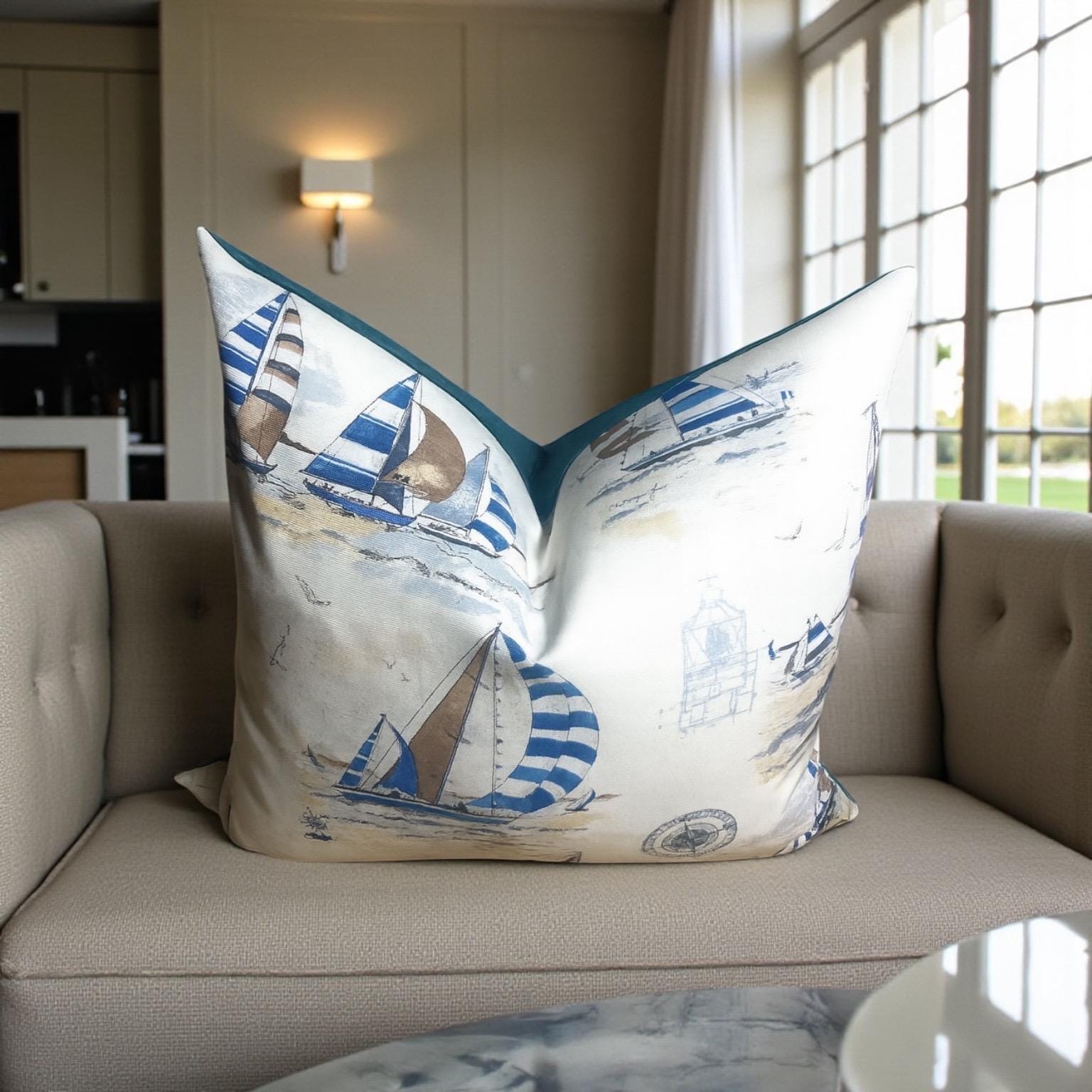 Handmade Nautical Pillow Cover 18x20” – Clarke & Clarke Cotton, Kingfisher Velvet