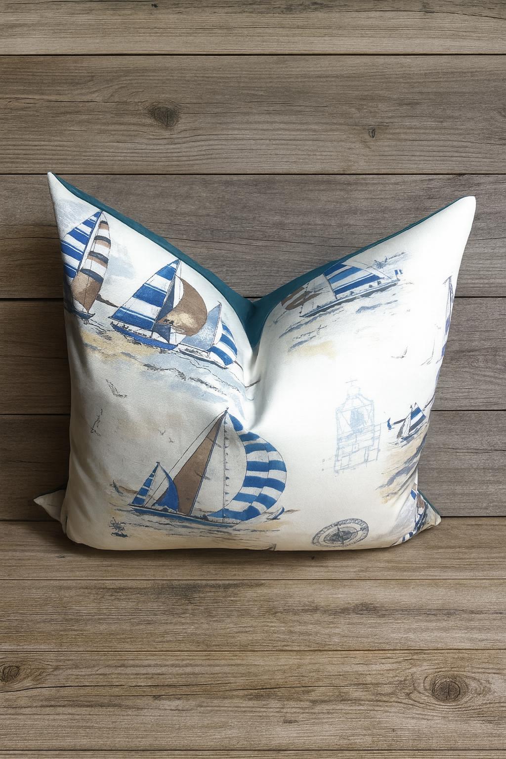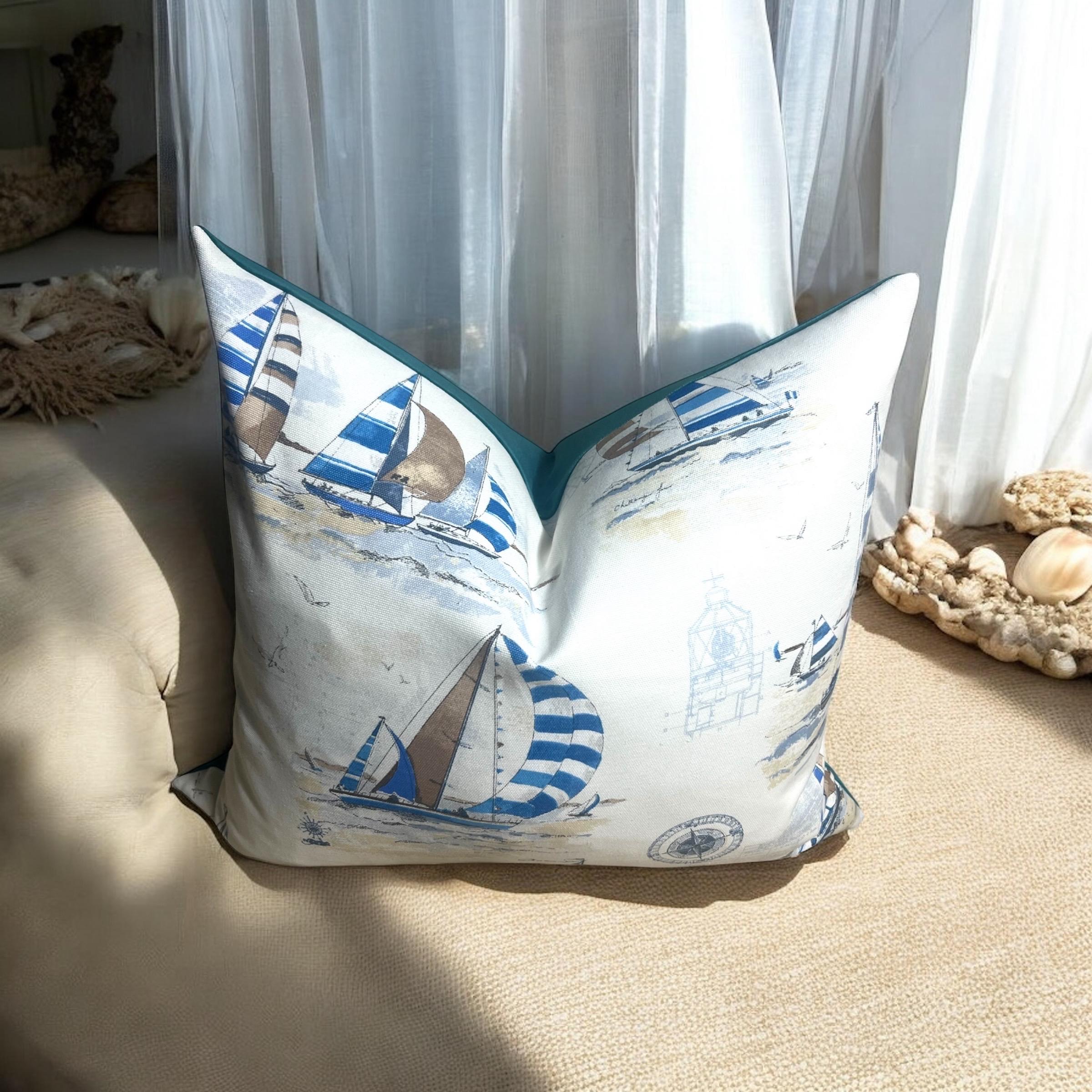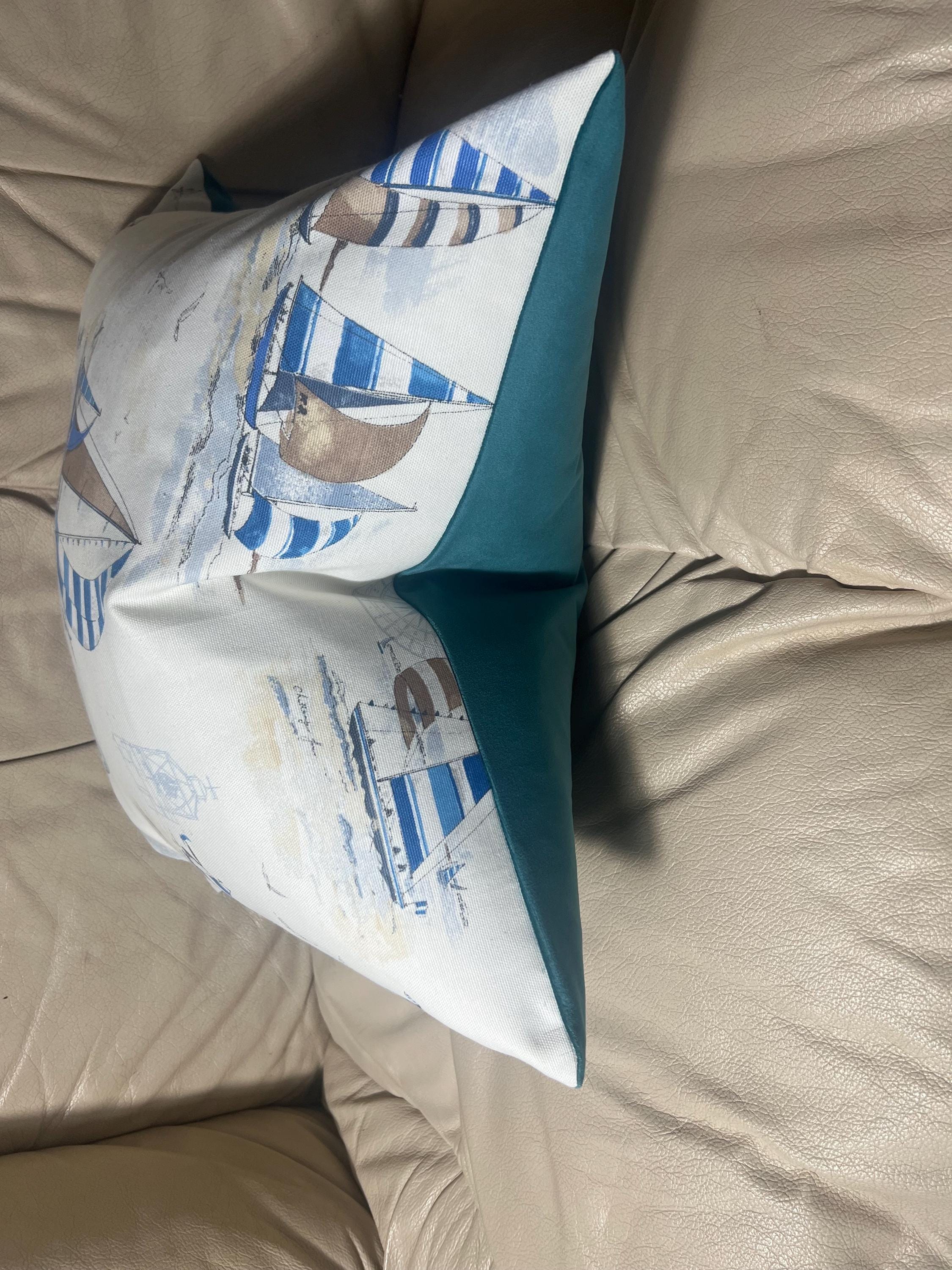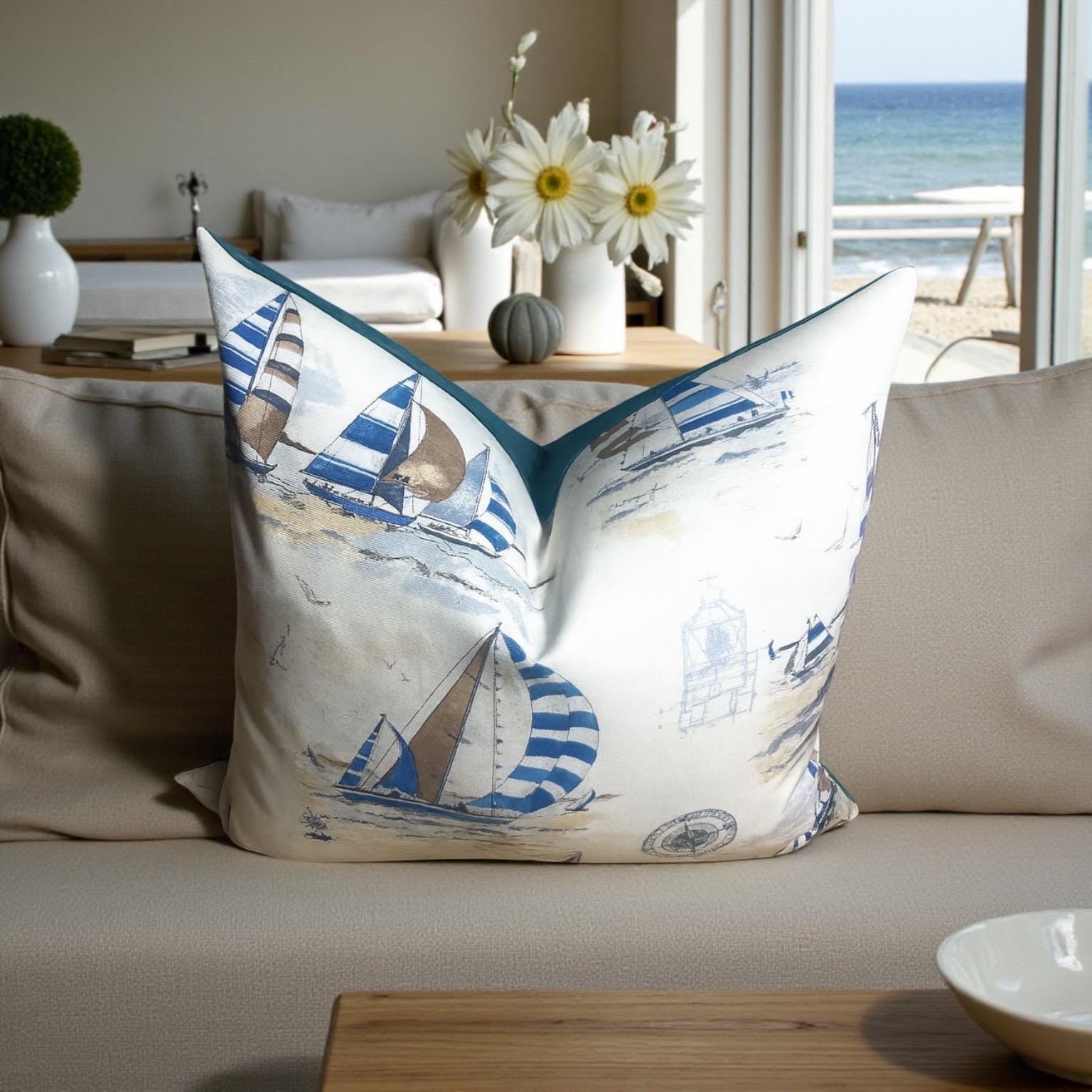 Handmade Nautical Pillow Cover 18x20” – Clarke & Clarke Cotton, Kingfisher Velvet