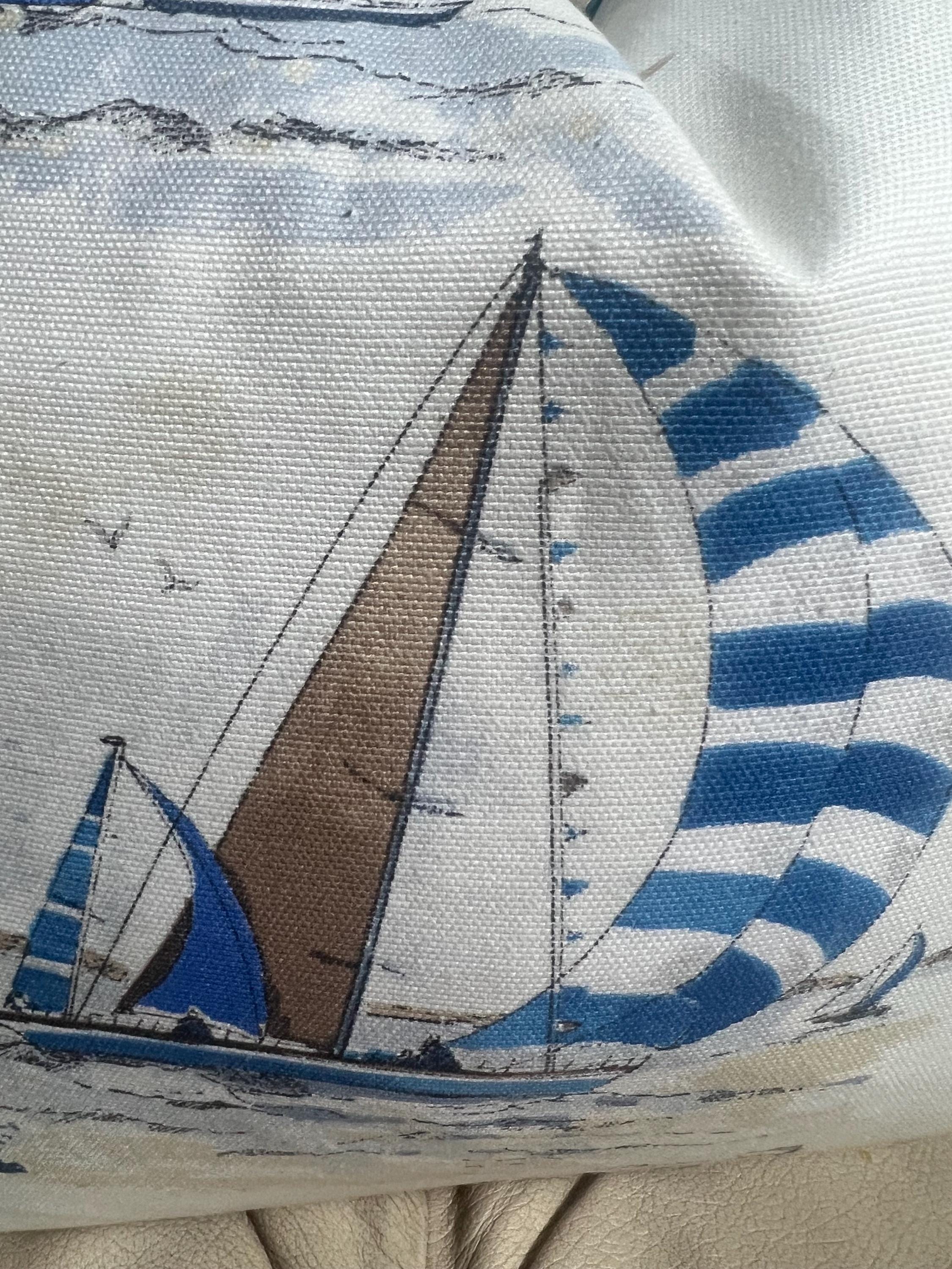 • Front: Clarke & Clarke cotton from their stunning sailing collection, featuring elegant nautical motifs.