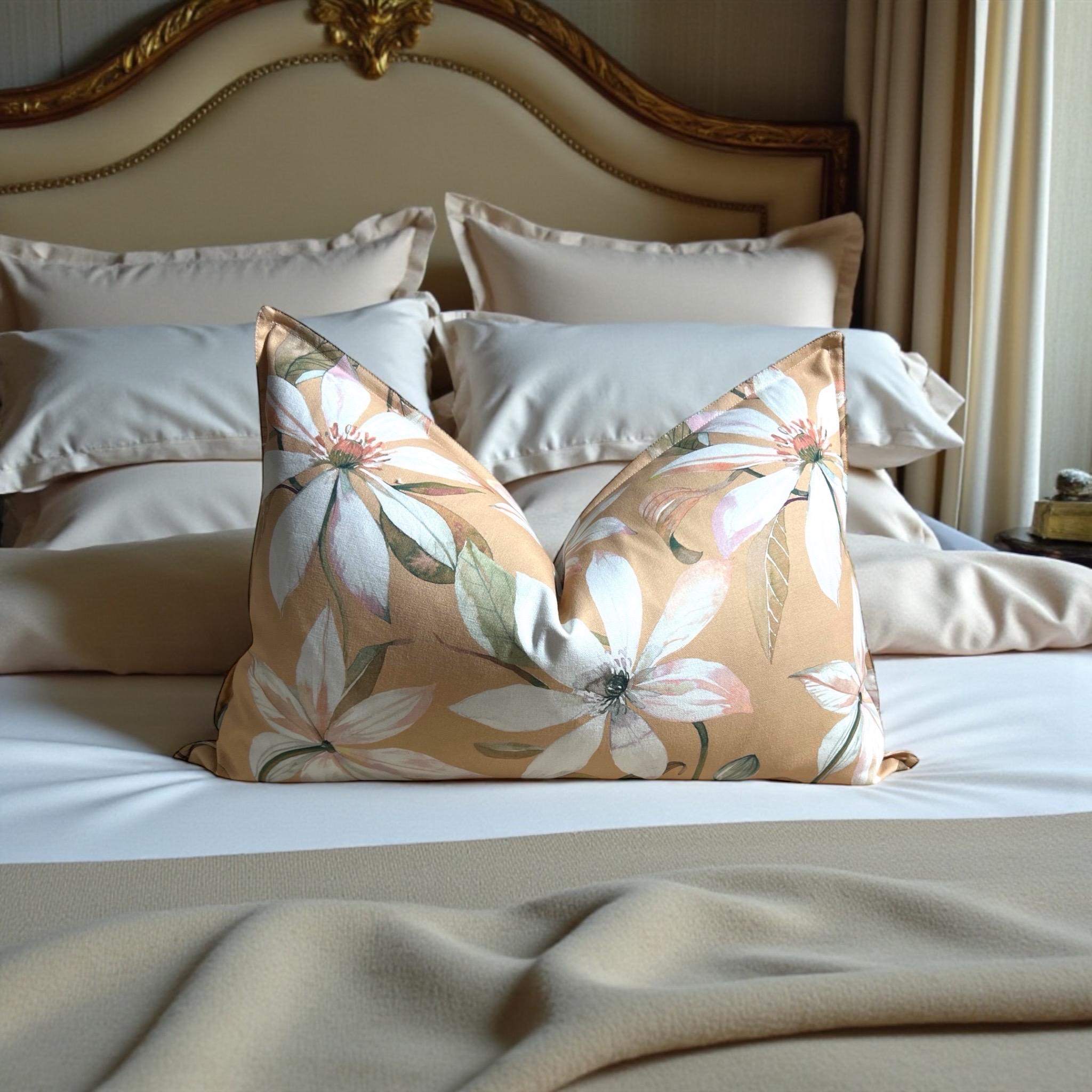 Luxury Floral Lumbar Pillow Cover: Olivia Beige Botanical Pure Cotton Cushion 16x26