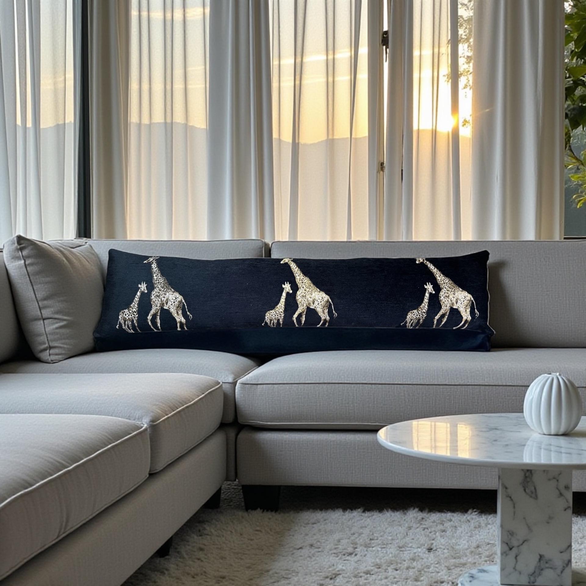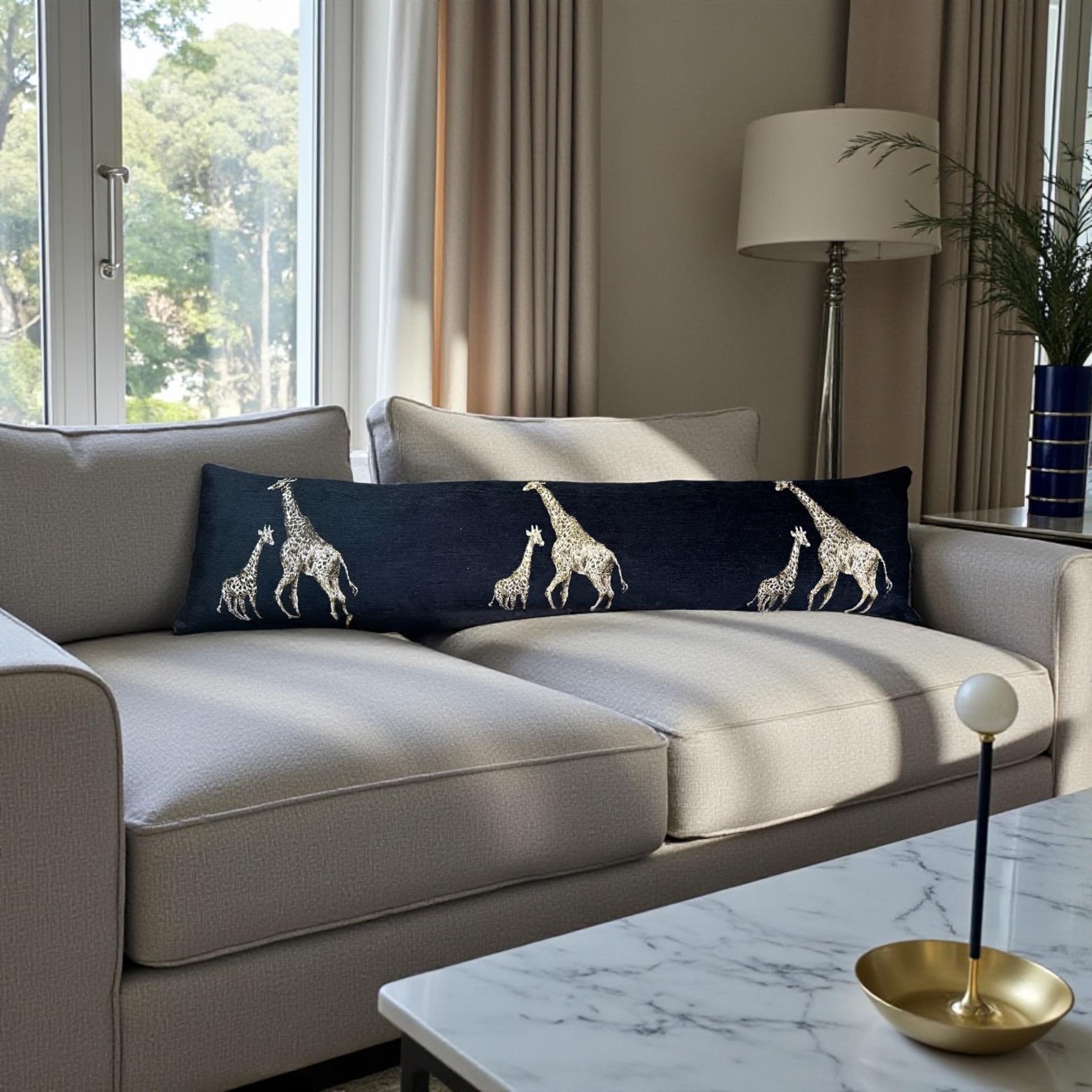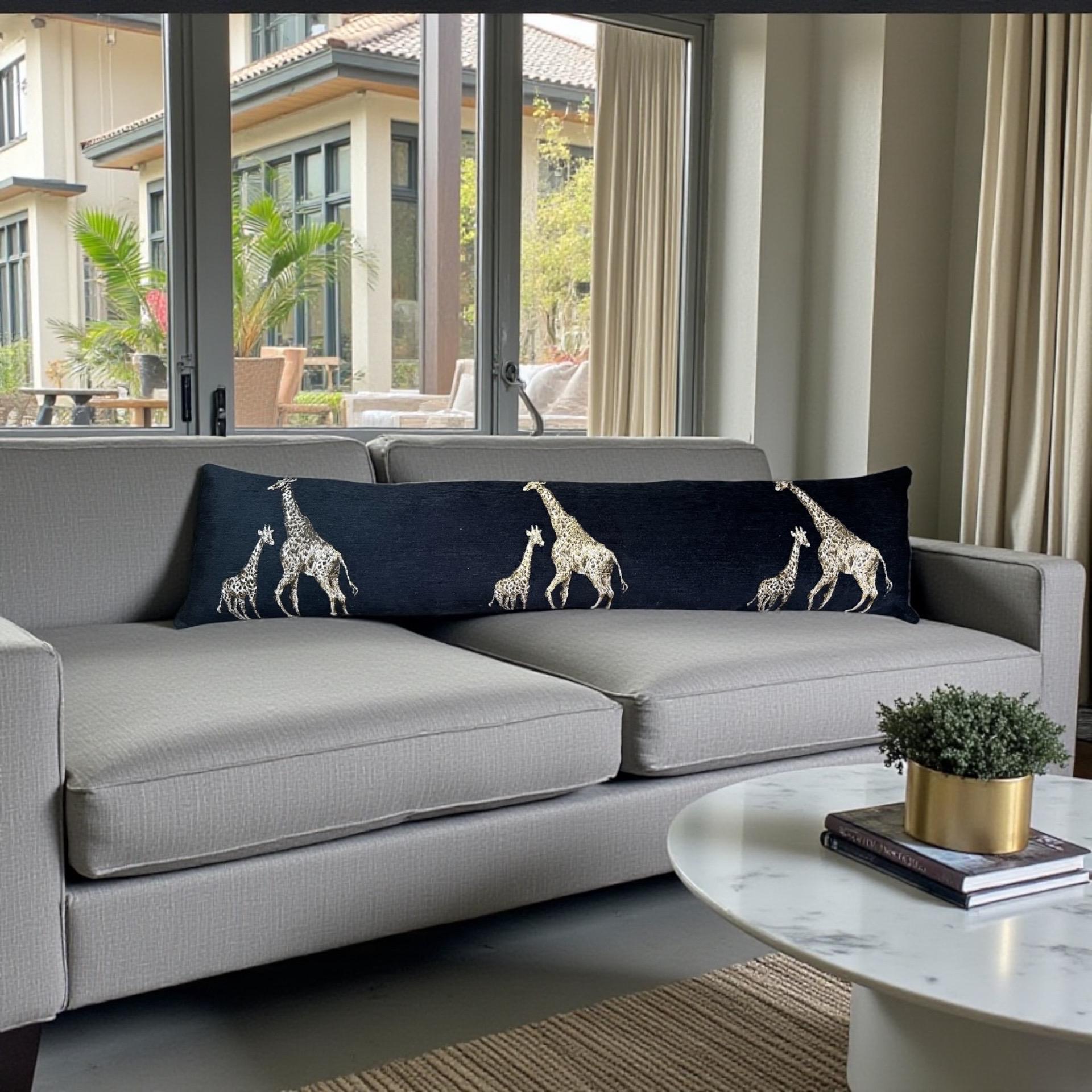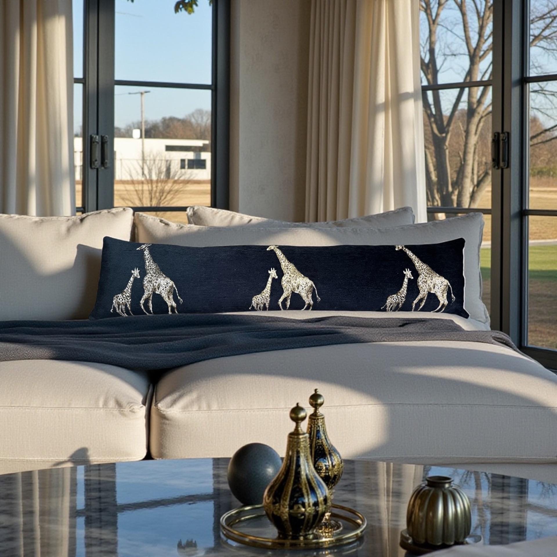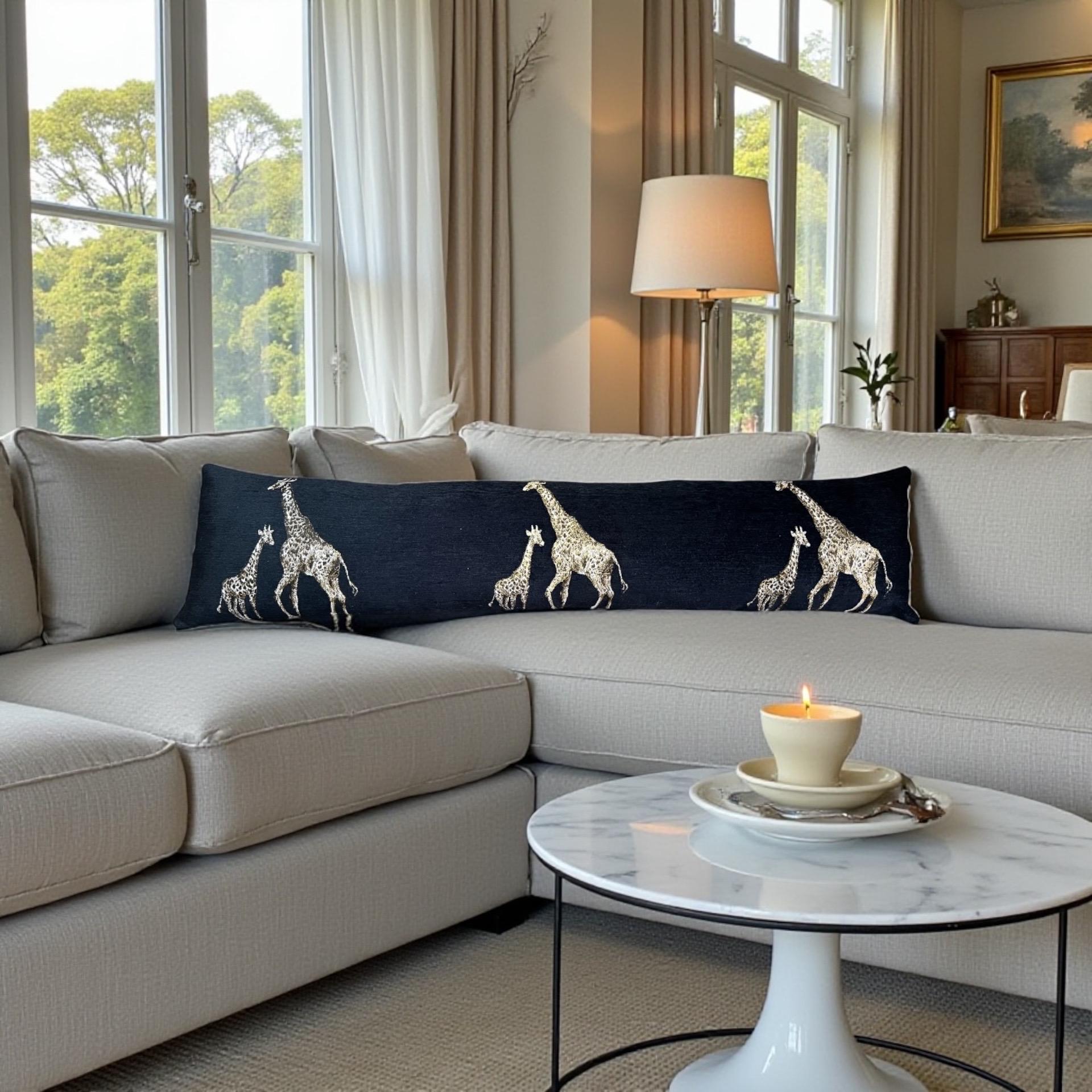 Luxury Handmade Giraffes Velvet Bolster Pillow Cover : Porter and Stone Designer Fabric 10x40”