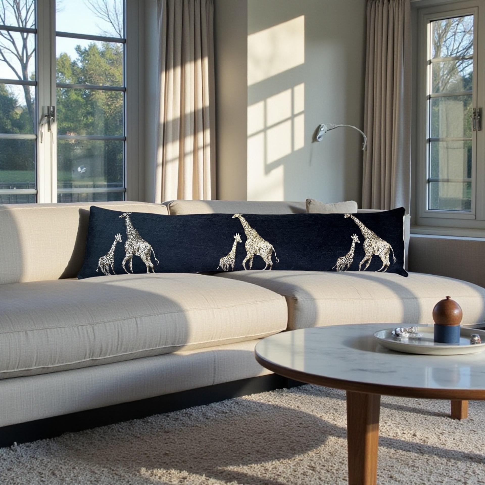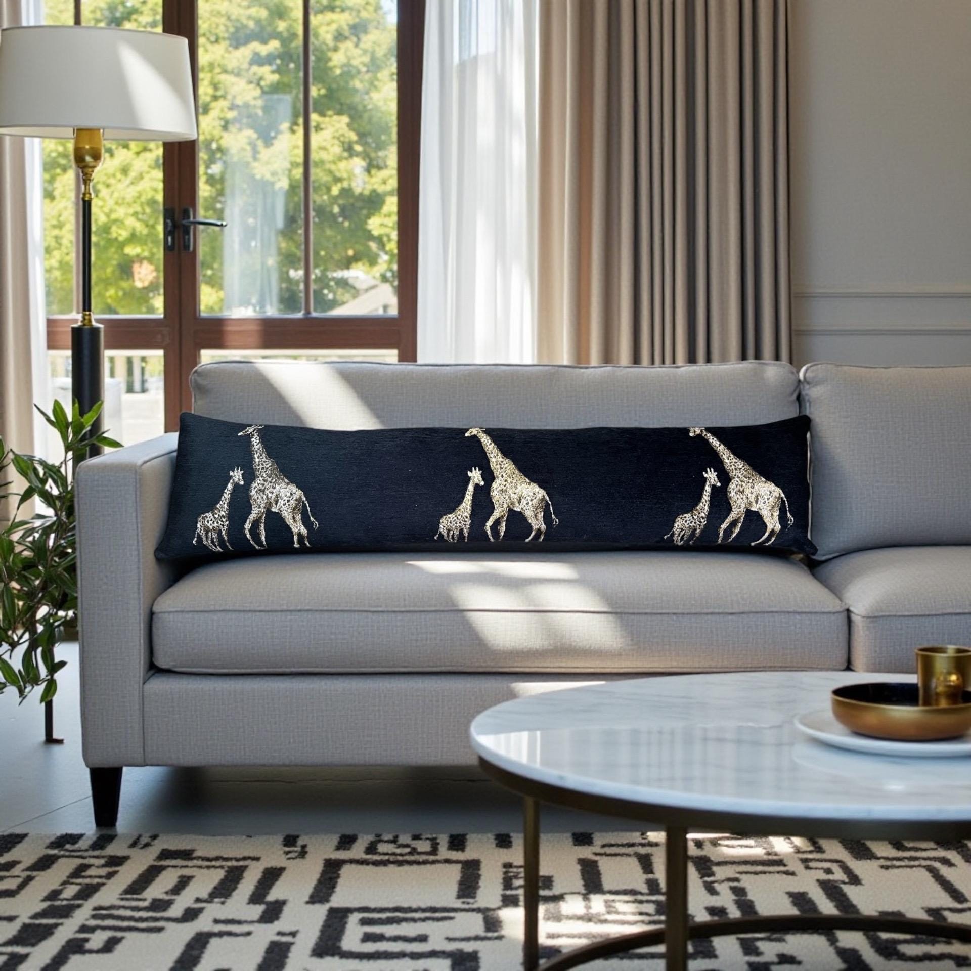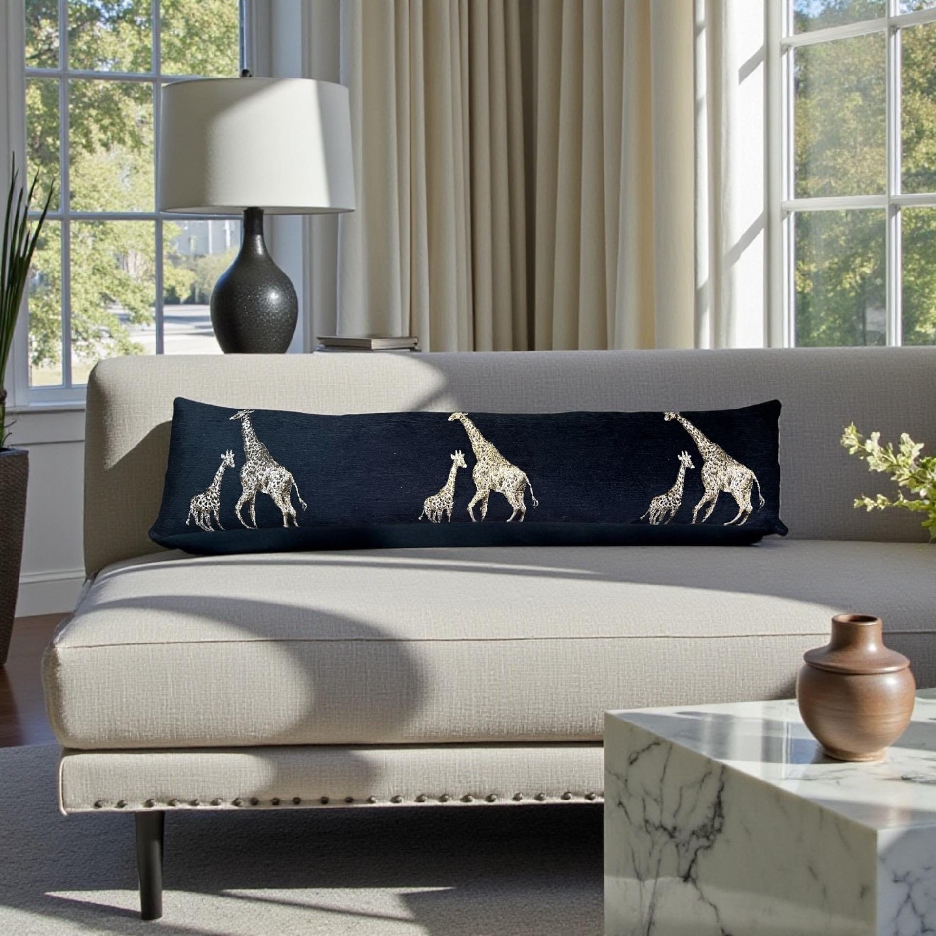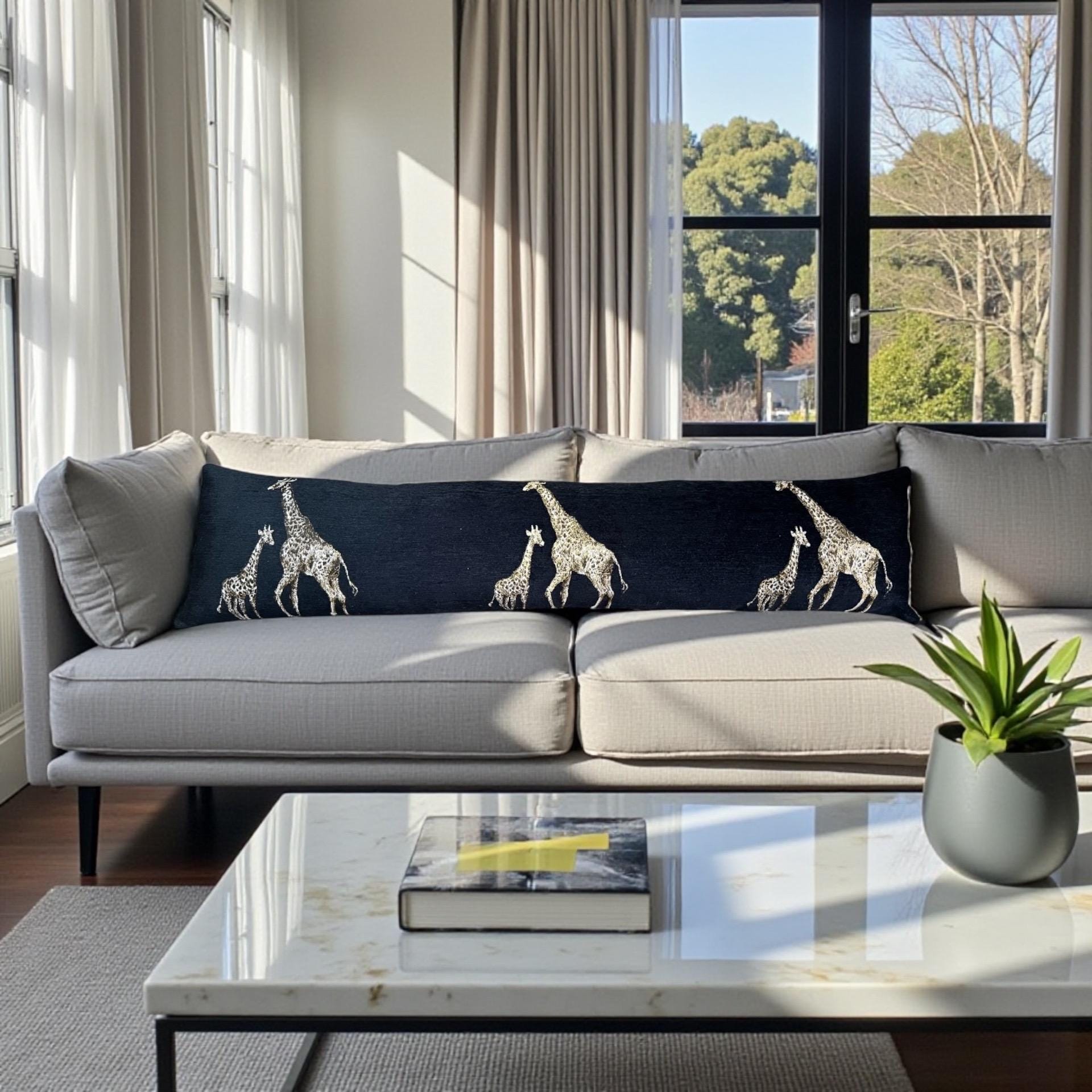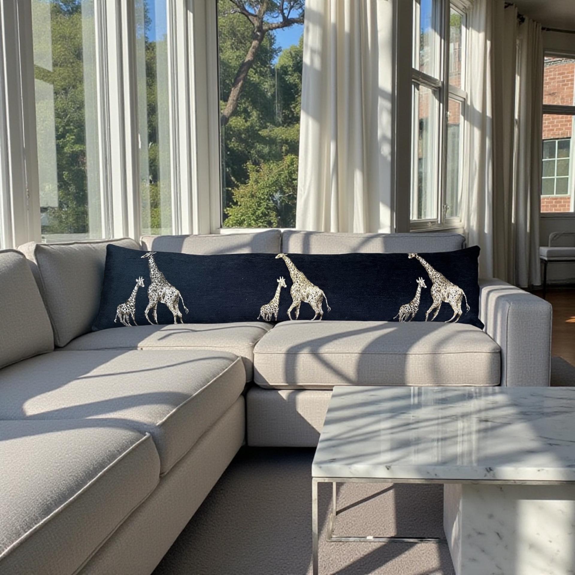 Luxury Handmade Giraffes Velvet Bolster Pillow Cover : Porter and Stone Designer Fabric 10x40”